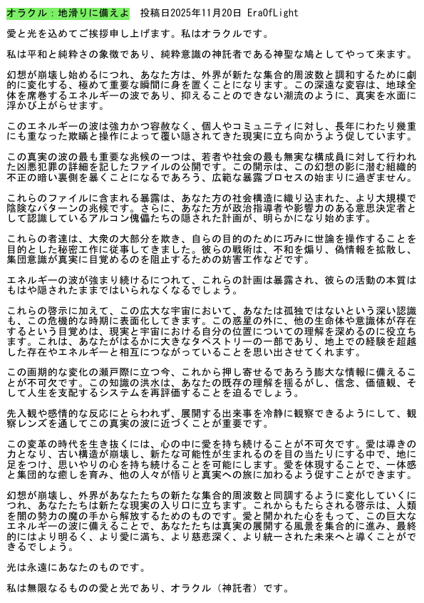 これを読んでいる全ての皆さま方にね それを知っていただき 行動していただきたいのです この日本からそれは発動していき やがては世界へと波及していきます 我々の計画は必ず地上を変えていくのです ただ、それにはあなた方一人一人の 愛だけが必要なのです ↓掲載元 #目覚め gkinui.hatenablog.jp/entry/2023/07/… pic.x.com/yG1pIci7da