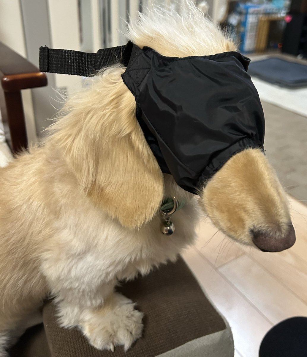 シェリーさん、車に乗る時とかめっちゃ鳴くんで(1番酷いのごみ捨て🥺)どうしたもんかなと考えてみた。医療用の目隠しってのがあるようで、シェリーさんは目隠しすると落ち着くからと、目隠し買ってみました。めっちゃ落ち着いてる…慣らしたらとても良いかもしれない。 #目隠し #ミニチュアダックス pic.x.com/Ea4H0jgXdv