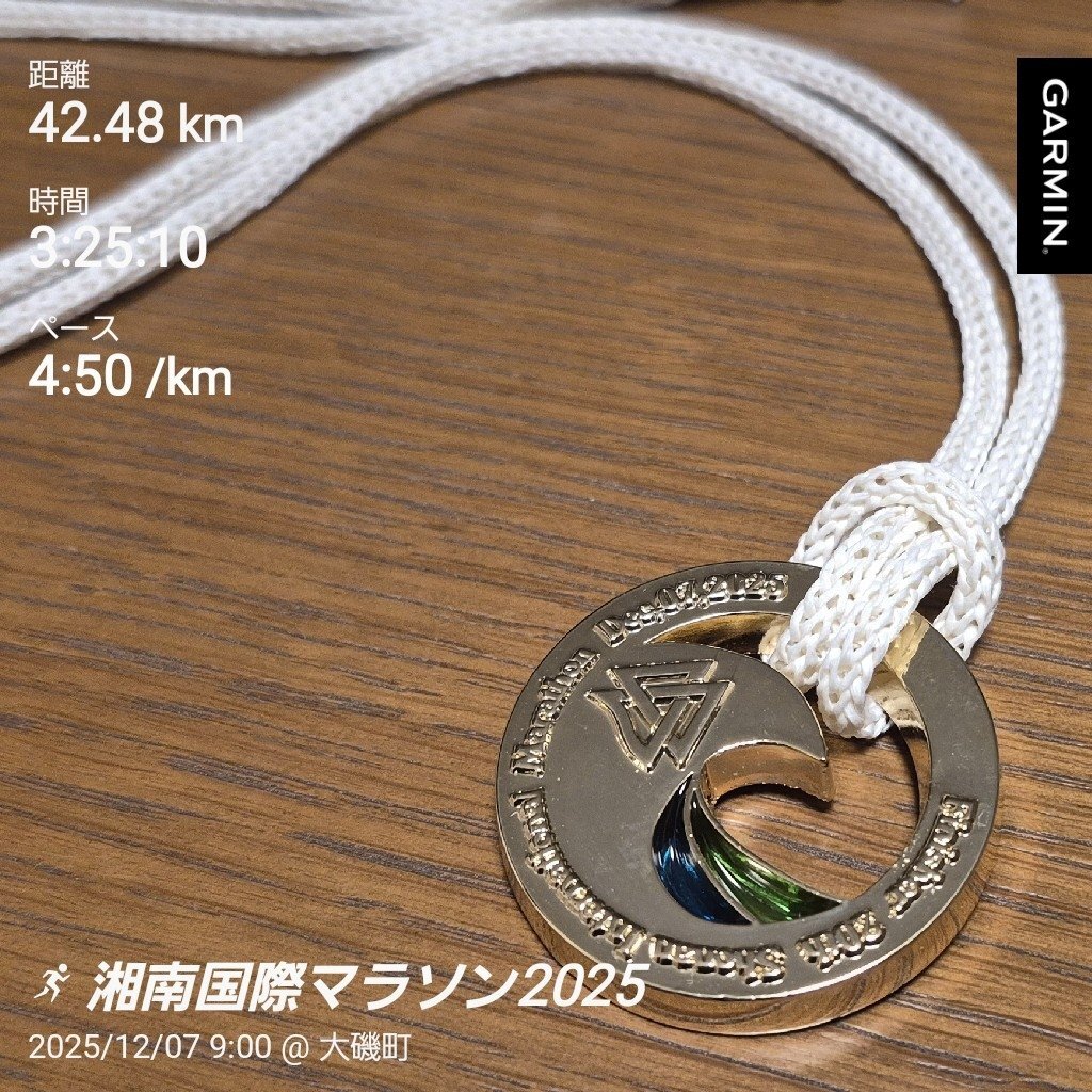 2025/12/07 #湘南国際マラソン 振返り。スタート直後からなぜか心拍が高く、予定ペース(4'45"/㎞)維持も少々危ない状況。騙し騙し踏ん張るも、40㎞付近の「ゴール見えて歓喜→まだまだ最後の折り返しは先」のターンで心折れる。修行が足りませんでした。 #富士山 と #相模湾 の絶景は最高でした! pic.x.com/qKalPNMRdf