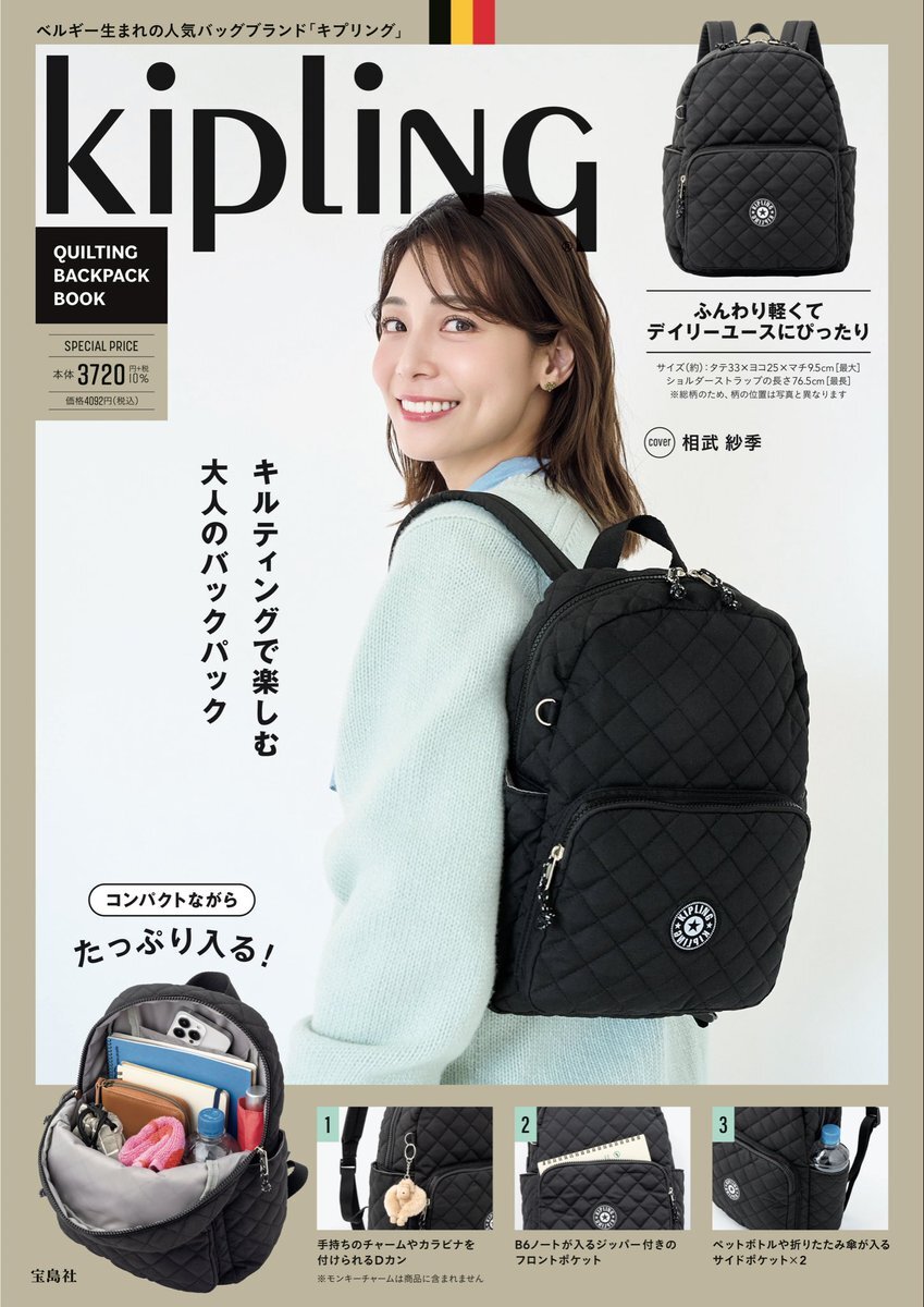 #相武紗季】 本日10/20発売📚 『Kipling QUILTING BACKPACK BOOK』 表紙を務めさせていただきました!✨ 是非チェックしてみてください!👀 #宝島社 #Kipling #オフショット pic.x.com/UJga1BXOVv