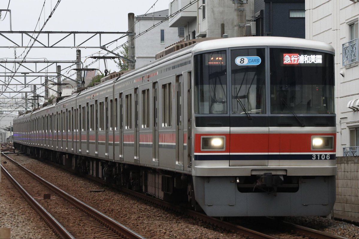 田園調布〜奥沢間のカーブにて。 トップナンバー3101Fや埼玉高速車による急行 赤羽岩淵行きを撮影📷 3101Fは新製当初東横線に8連で投入。相鉄直通により編成形態は違うものの、8連に戻る結果に。 #東急 #東京メトロ #埼玉高速鉄道 #都営 #相鉄 #東急3000系 #埼玉高速鉄道2000系 #都営6500形 pic.x.com/d00t2bwqnU