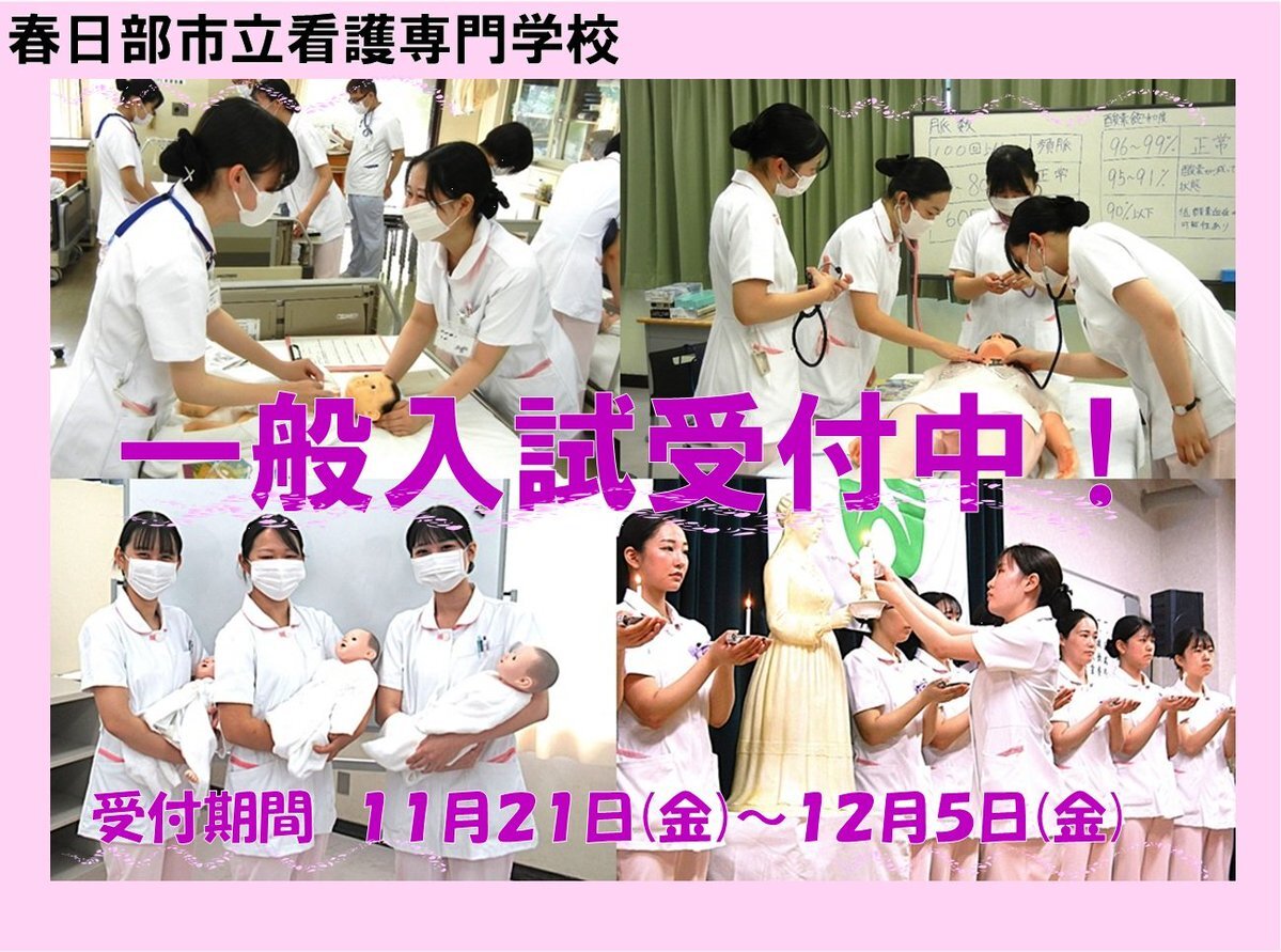 【市立看護専門学校:一般入試受付中!】 令和8年度入学を希望する人を募集しています✨ 受付期間は12/5㈮まで! 夢に向かって一緒に頑張りましょう✨ (担当)看護専門学校 ℡0487634311 詳細は市公式HP( city.kasukabe.lg.jp/topics/31613.h… )へ #春日部 #看護師 #看護学校 #一般入試 pic.x.com/PF1ZNfRPgh