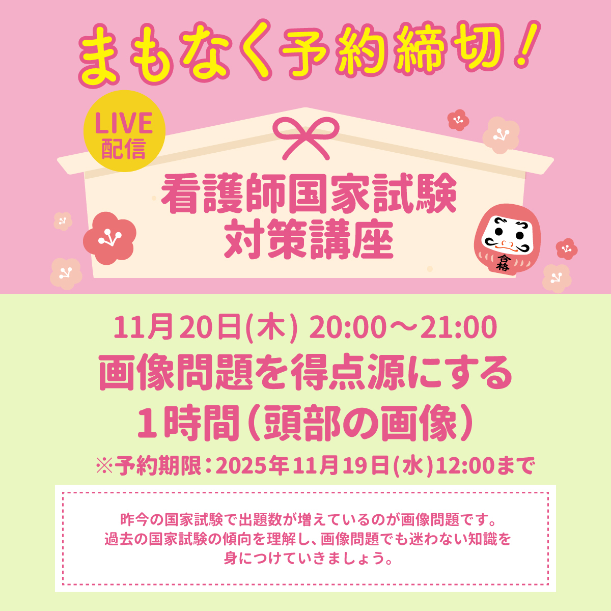 \\🚨今週開催🚨// 『看護師国家試験対策予備校のWAGON』 📅11月20日(木)20:00~21:00 画像問題を得点源にする1時間(頭部の画像) 看護師国家試験のプロが直接指導! 無料で受けられるチャンスです🆓👀 ご予約はこちら👇 nurse.mynavi.jp/student/semina… #看護学部 #看護学生 #マイナビ看護学生 pic.x.com/3n07Do284R