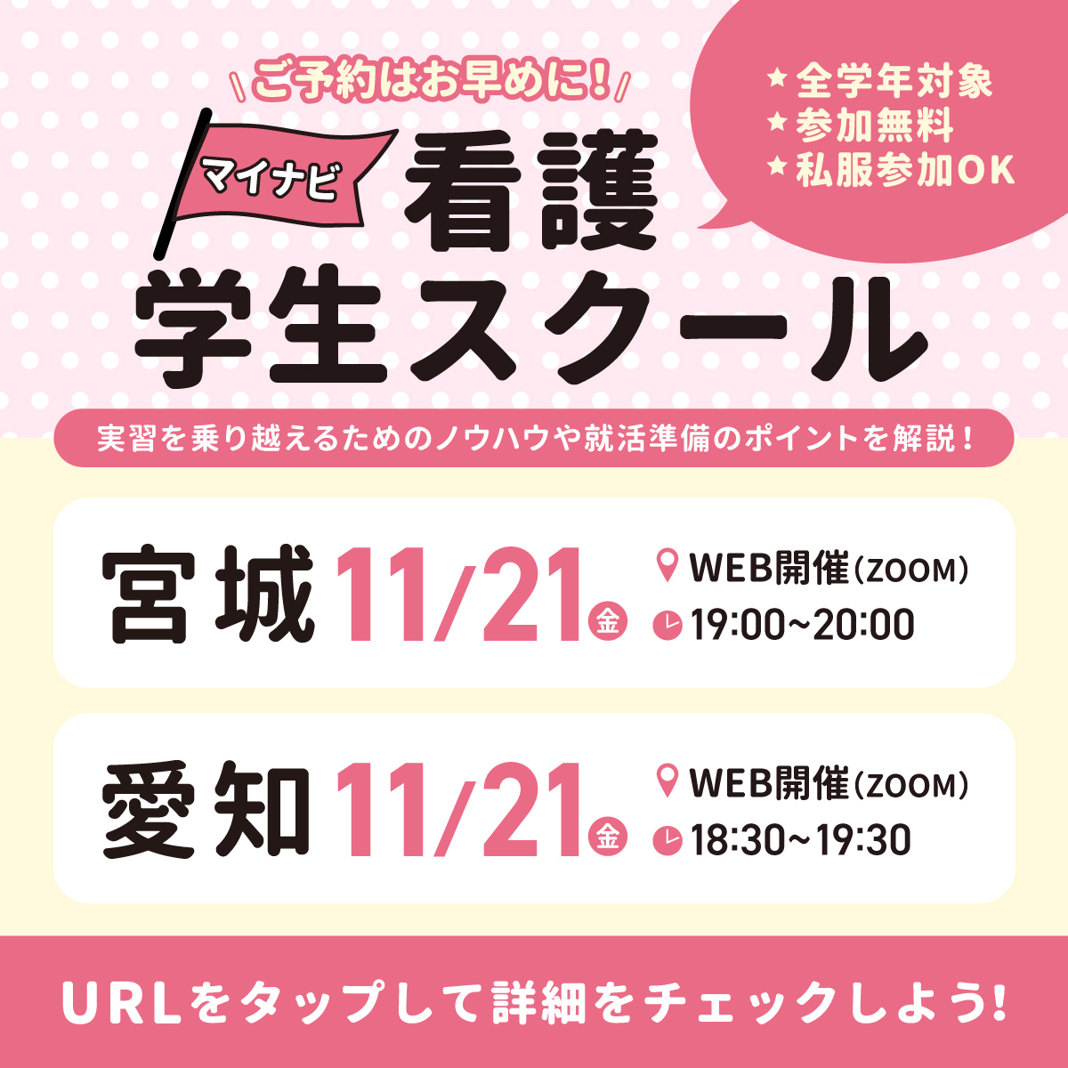 𓇼┈┈┈┈┈┈┈┈┈┈┈𓇼 マイナビ看護学生スクール開催🎉 𓇼┈┈┈┈┈┈┈┈┈┈┈𓇼 💻11月21日(金) 宮城・愛知 実習を乗り越えるためのノウハウや 就活準備のポイントを解説します💡 ご予約・詳細はこちら👇 nurse.mynavi.jp/student/school… #看護学部 #看護学生 #マイナビ看護学生 pic.x.com/oYfRVjA6TU
