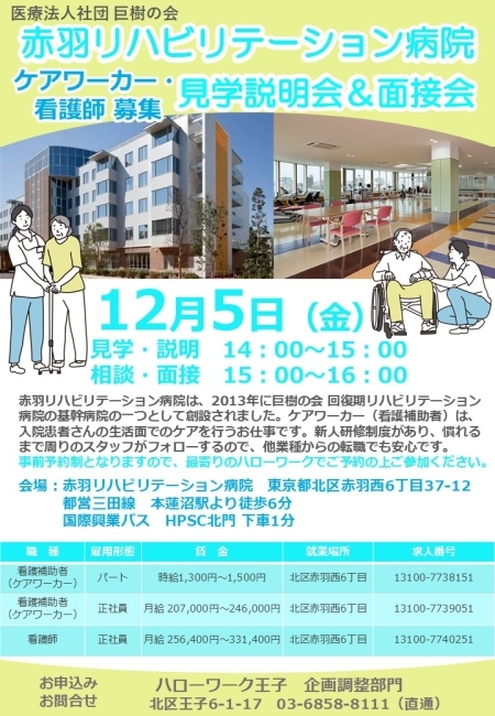 見学説明会&面接会のお知らせです📢 12/5(金)開催😀医療法人社団 巨樹の会 赤羽リハビリテーション病院🏥看護補助者・看護師の募集です🙋 下記リンクより、求人票とハローワーク職員が訪問し確認したおすすめポイントをご覧ください⬇️⬇️⬇️✨ jsite.mhlw.go.jp/tokyo-hellowor… #看護師 #看護補助 #面接会 pic.x.com/wbOjTaY3p6