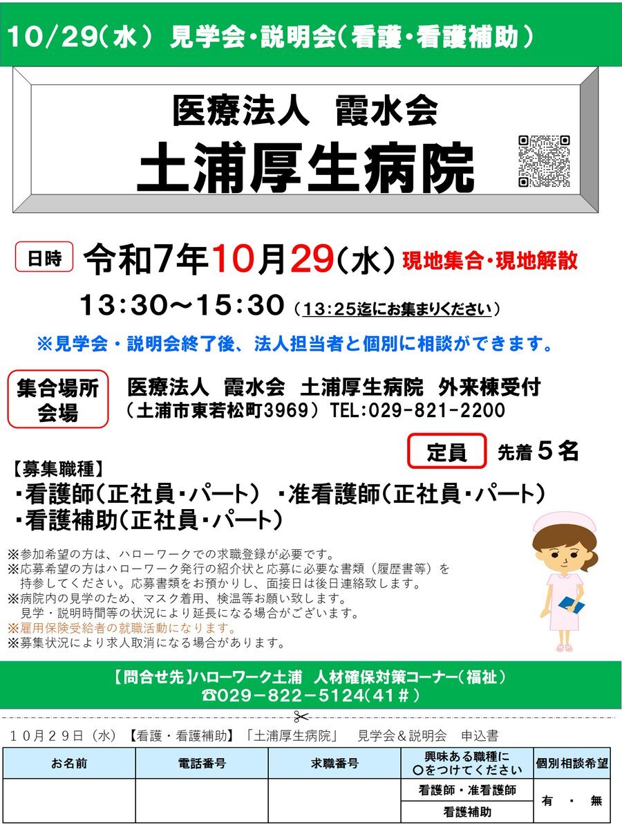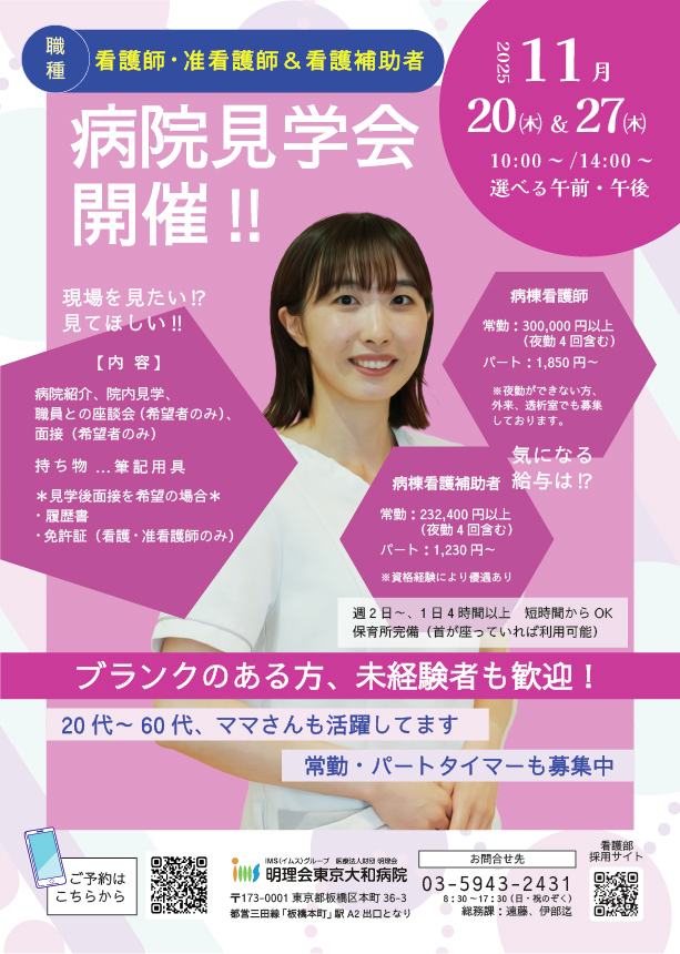 📅11月20日(木)・27日(木) 看護師・准看護師・看護補助者向けの病院見学会を開催します! 現場の雰囲気を見てみたい方、ブランクのある方、未経験も歓迎。 午前(10時)・午後(14時)を選べます🌺 ご予約はこちらから: docs.google.com/forms/d/e/1FAI… #看護師 #准看護師 #看護補助 #病院見学会 pic.x.com/fPuZPU2cbK