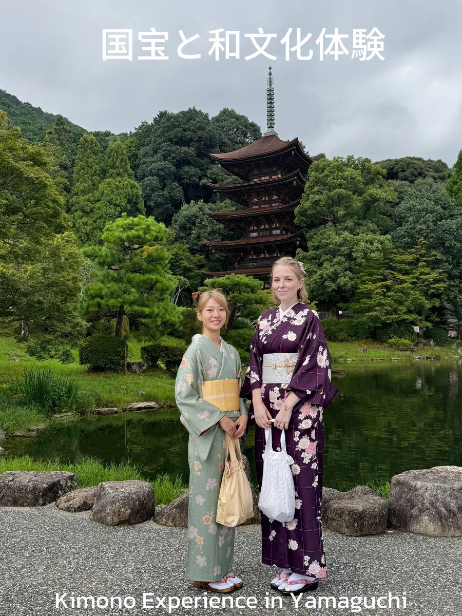 スウェーデン🇸🇪からのお客様がLAWAKUで着物体験👘 ちょうど国宝・瑠璃光寺五重塔の幕が外れ、美しい姿を望むことができました🌿 歴史と伝統の調和がとても素敵でした。 #LAWAKU #着物体験 #山口観光 #瑠璃光寺 #五重塔 #yamaguchi #kimonoexperience pic.x.com/4aHUgX3wVX