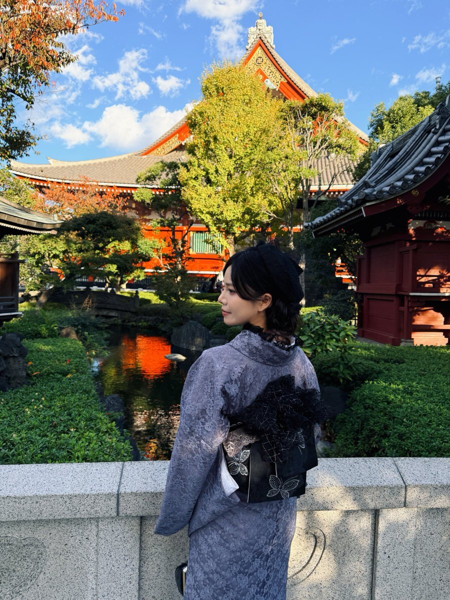 We love seeing guests from around the world! A beautiful client rocking our gray Komon! Her sweet smile is contagious and lights up the whole look. 👘浅草着物レンタル桜華 #着物体験 #着物で紅葉 #kimono #tokyotravel #紅葉 #东京着物 pic.x.com/NmxN7ISt17