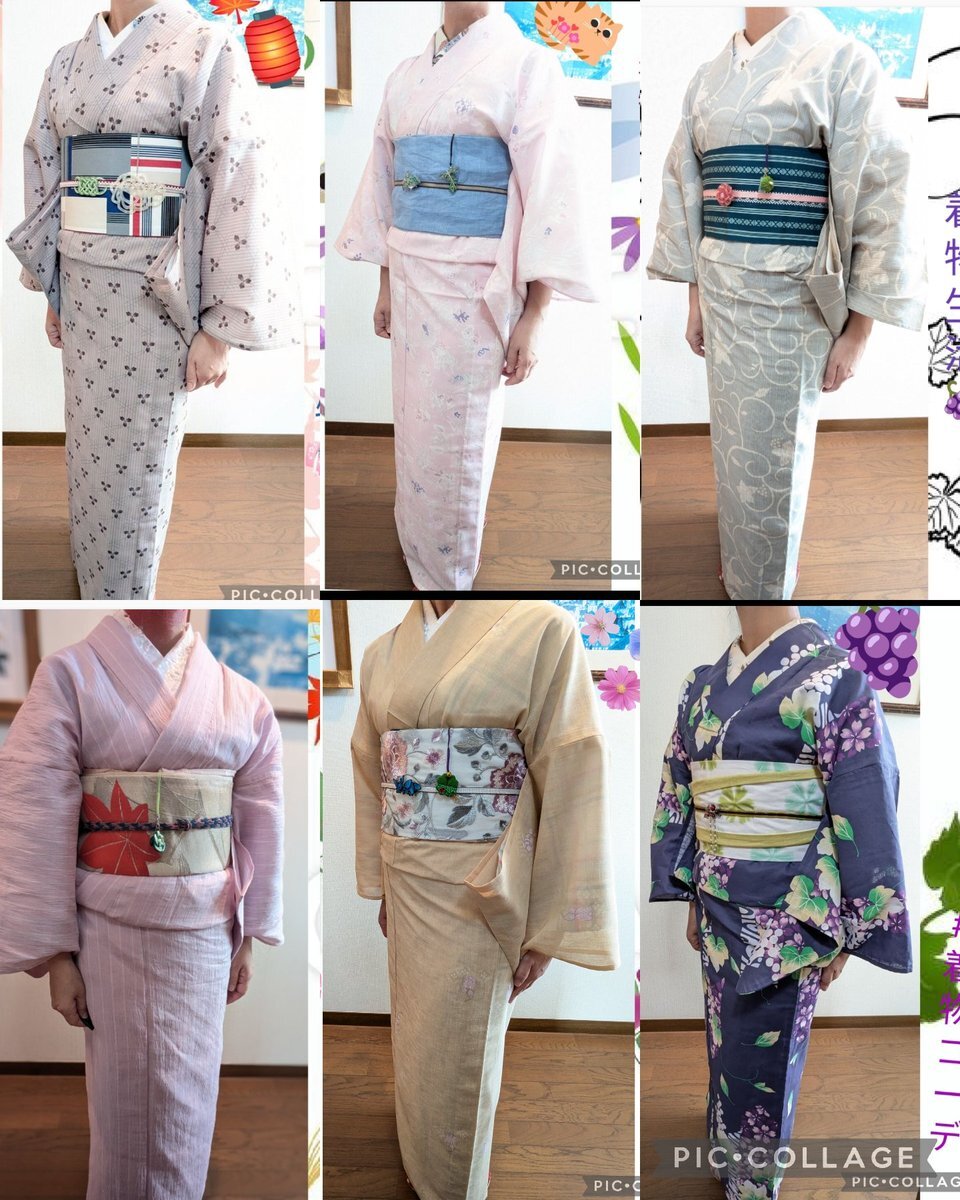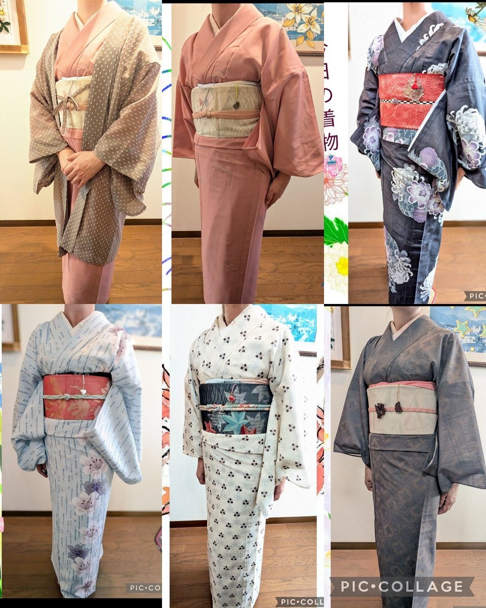 室内着物環境に良い気候⇑ 明日は暑さが戻って来るそうで 着物コラージュ👘 #今日の着物 #着物コーディネート  #着物生活 お品書き 縮み、半幅帯 ツマミ小物(ヘアクリップ&根付) 千鳥帯留 pic.x.com/exZkdDD0lF