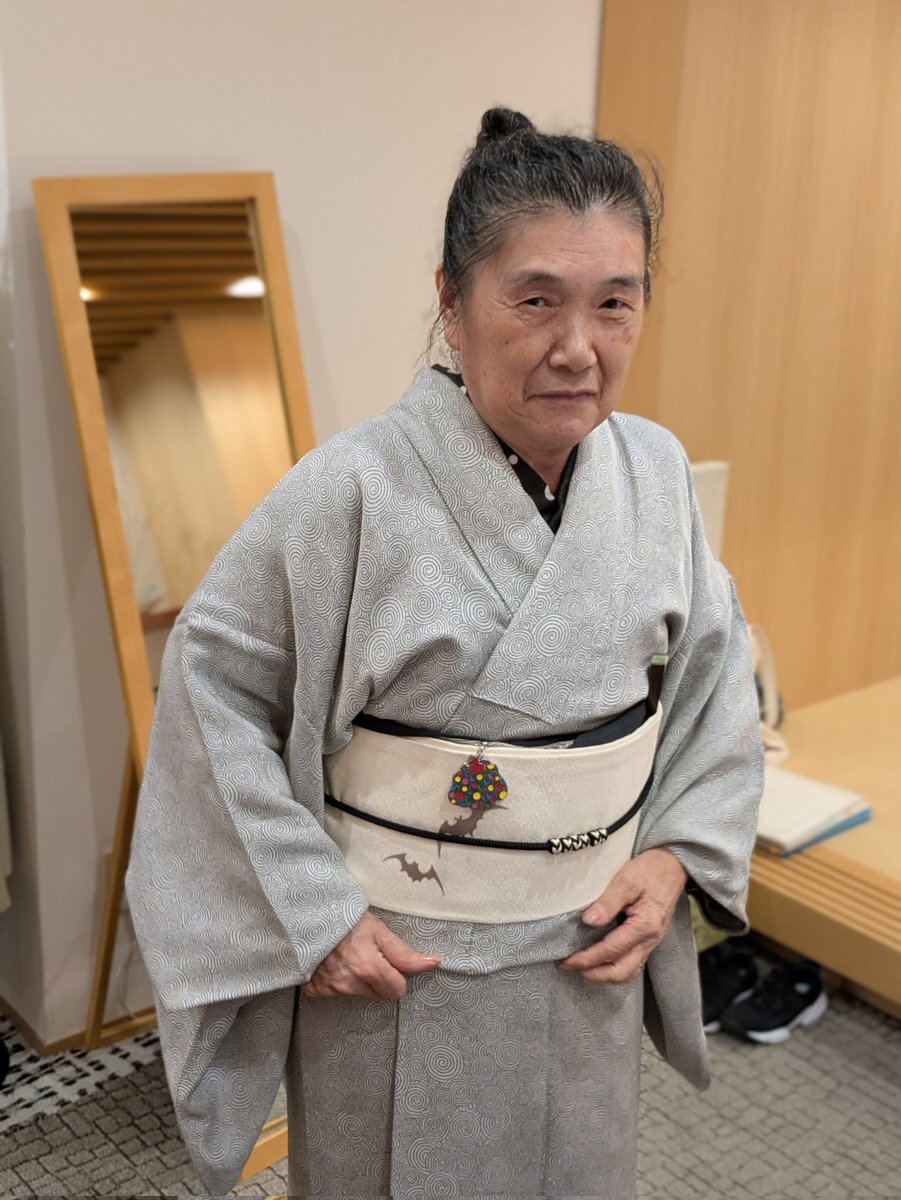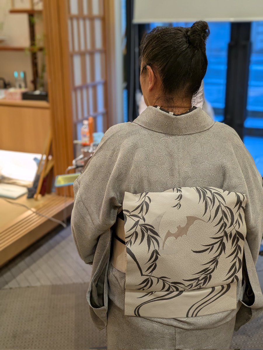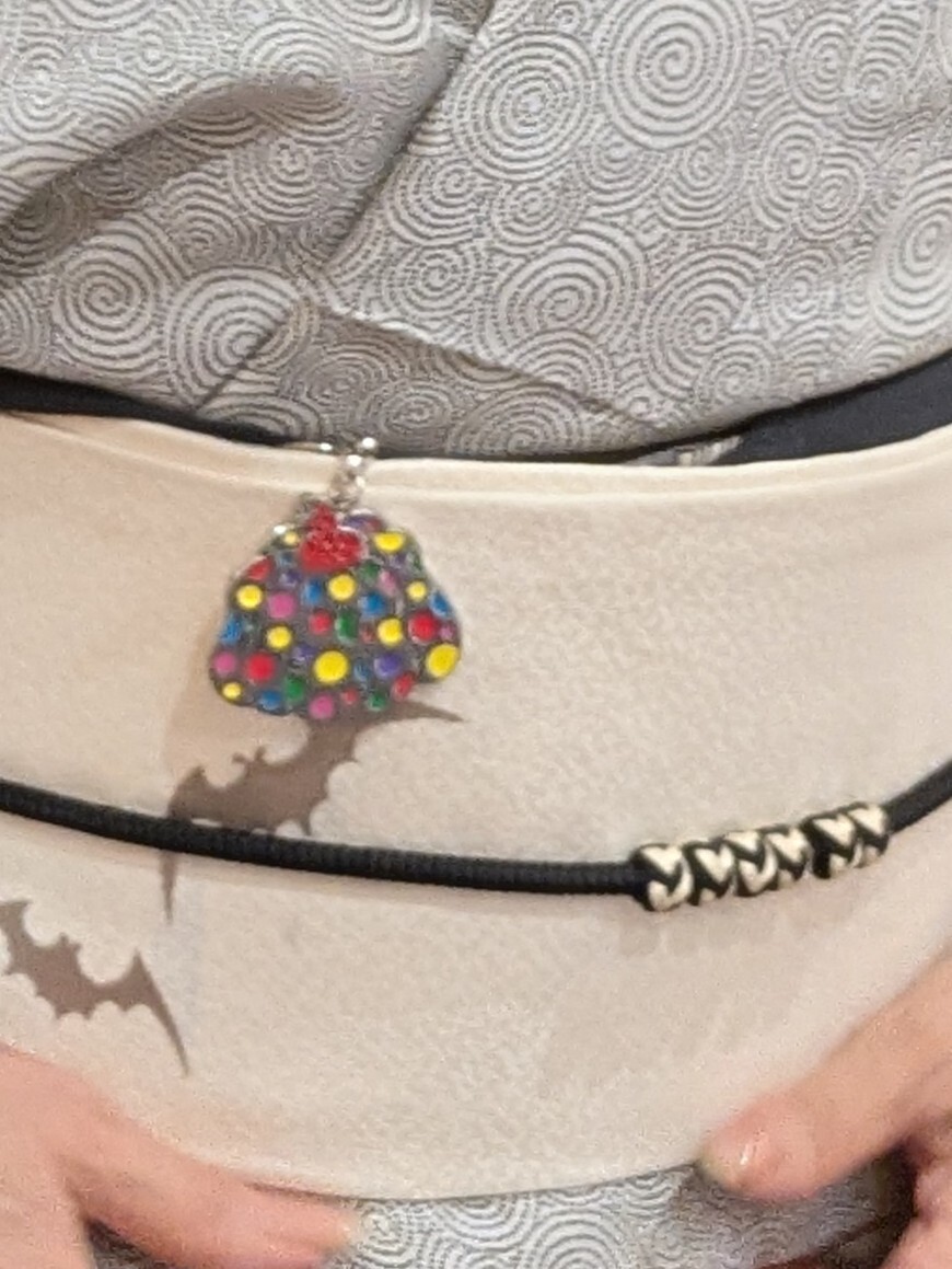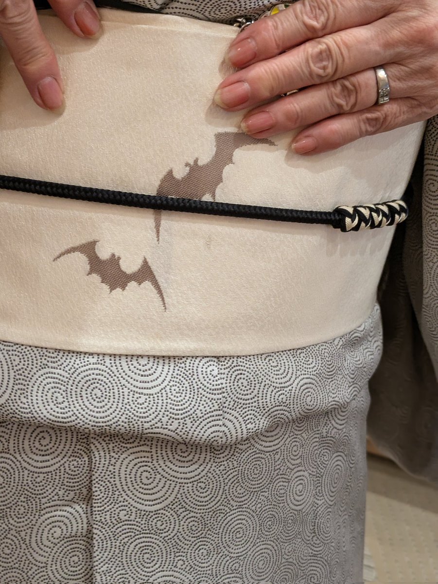 #お客様コーディネート👘 #ちくちく和裁教室 に参加のお客様✨️ もうすぐ #ハロウィン ということで、コウモリが描かれた帯にカボチャの根付でコーディネート✨️ 季節を楽しんだコーディネートですね♪ 素敵なコーディネートをありがとうございます😊 #着物コーデ #着物生活 #着物好き #着物女子 pic.x.com/HgoQWmETYQ