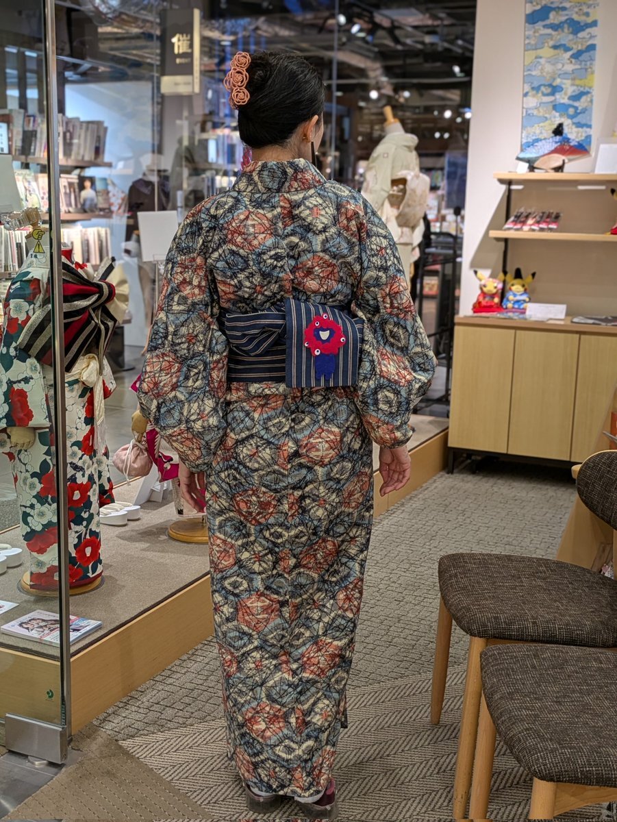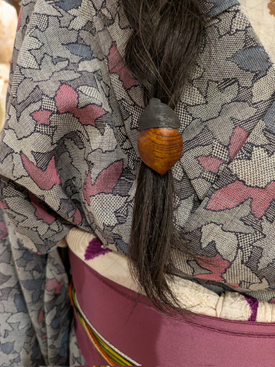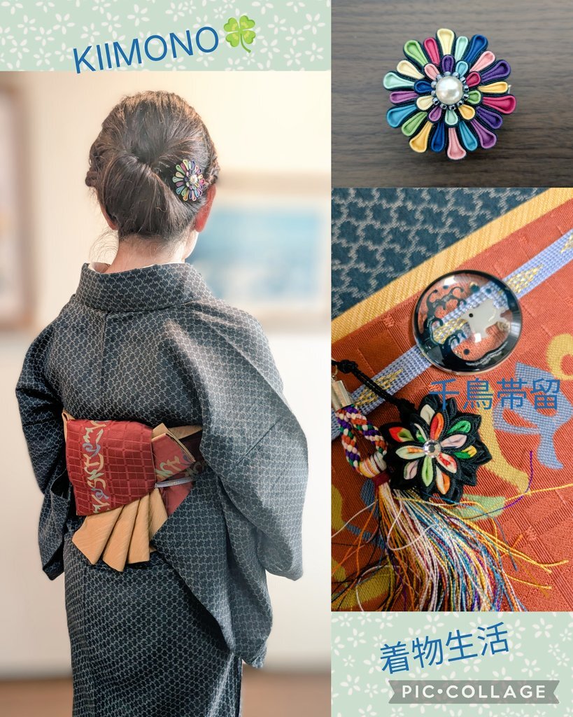 毛糸の買い出しに手芸店へ🧶 ワンポイントオシャレに ツマミブローチ(蒼菊さん)コンバータ使い簪にコーデの配色に合わせタッセル付けました #今日の着物 #着物コーデ #着物でお出かけ #着物生活 pic.x.com/c5GSwPmSUt