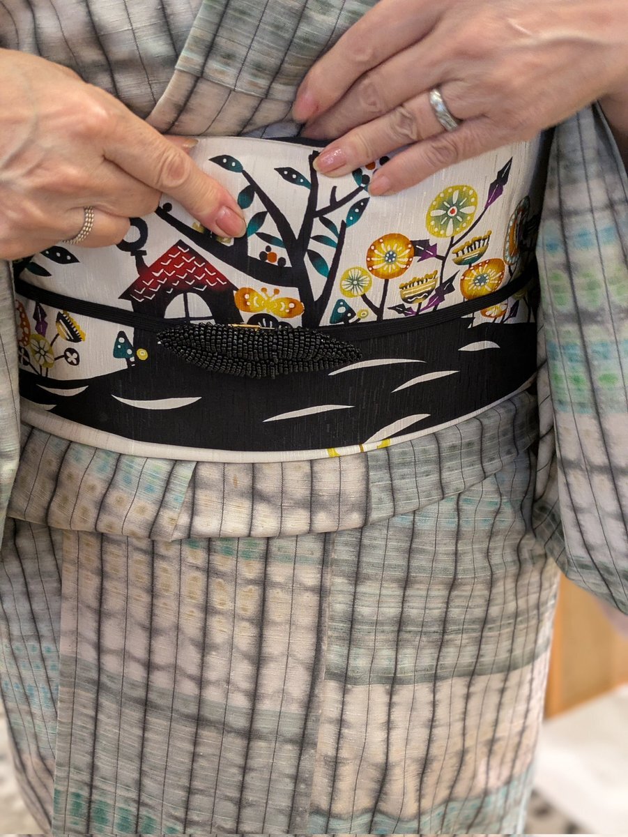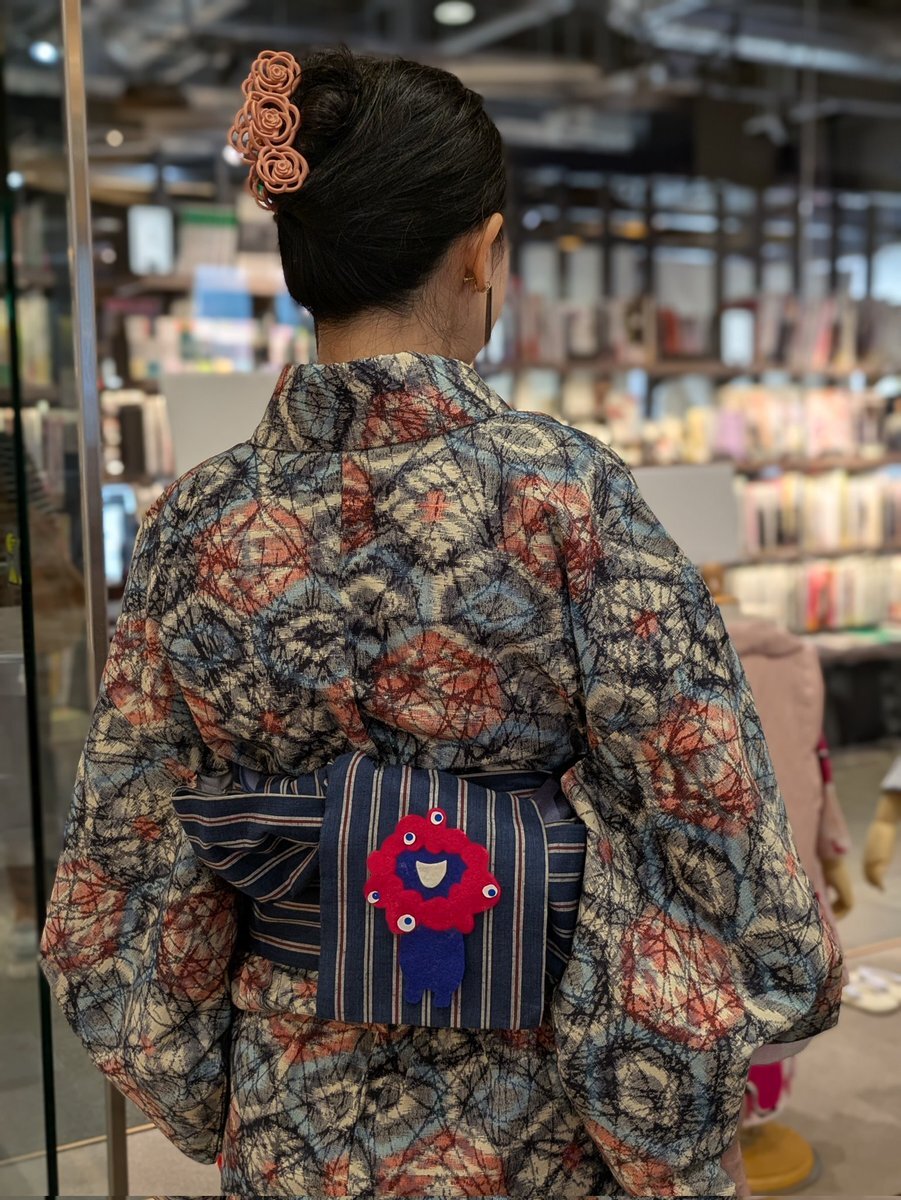 ちくちく和裁教室ご参加のお客さま 帯に可愛い #ミャクミャク が‼️ フェルトで手作りして #半巾帯 に付けられたそう☺ きものは今から会うお友だちから譲り受けられたもの✨お友だち喜んでくださるでしょうね😉 素敵なコーディネートをありがとうございます😊 #着物コーデ #着物生活 #着物好き pic.x.com/16mRjXMY7G
