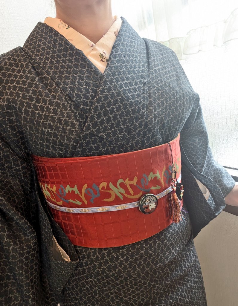 #お客様コーディネート👘 ちくちく和裁教室に参加のお客様✨️ 赤ずきんちゃんの # なので、 #帯留め を口にして、物語を表現♪ きものはお母さまのものを和裁教室でサイズ直しされたそうですよ☺ 素敵なコーディネートをありがとうございます😊 #着物コーデ #着物生活 #着物好き #着物女子 pic.x.com/7GZlQB1JhM