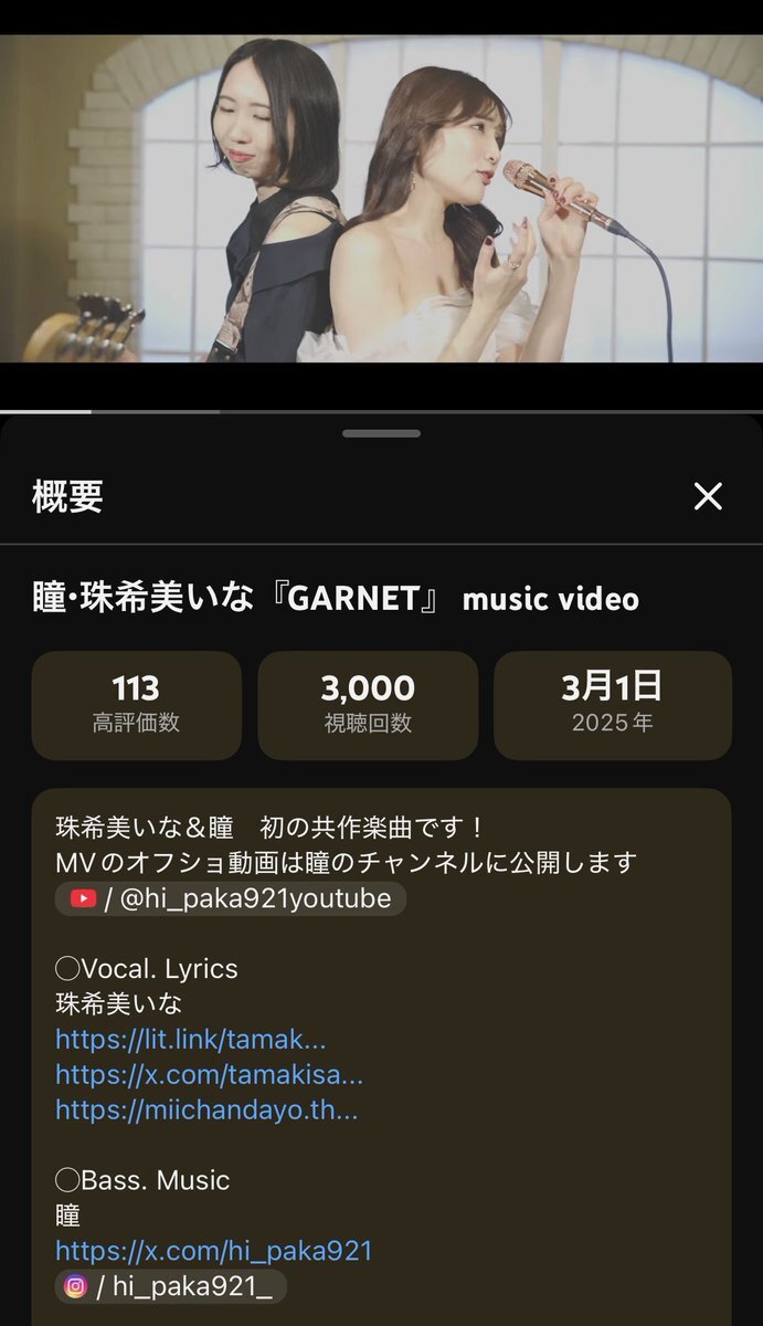 ・珠希美いな『GARNET』 music video 3000回再生に到達いたしましたことを そっとお知らせいたします🥳 Vocal. Lyrics : #珠希美いな  Bass. Music : # youtu.be/9FNPPG2VmV0?si… @YouTubeより pic.x.com/xoseuh7va9