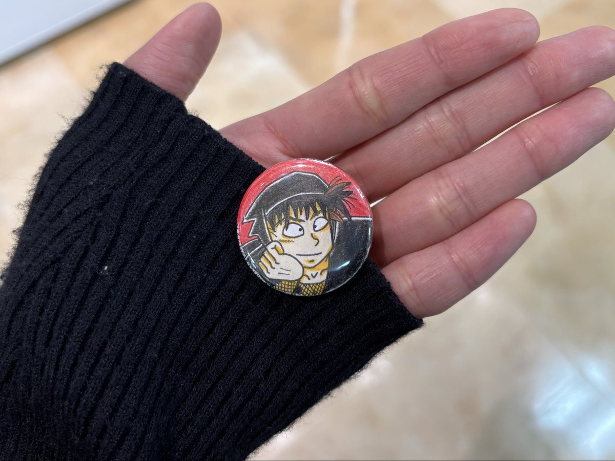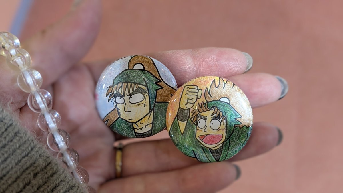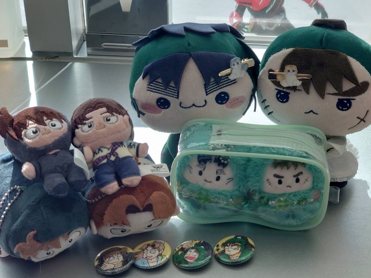 車窓とトメチャブロ 手前の缶バッジは線画に自分で色をつけて缶バッジにできるイベントでがんばりました 普段いッッッちミリも絵を描かなければ色も塗らない人間なので出来栄えは遠目で見てください自作ですがちゃんと公式グッズですあがるおすすめ #落第忍者乱太郎 原画展 #石ノ森萬画館 pic.x.com/dVGKi4232b