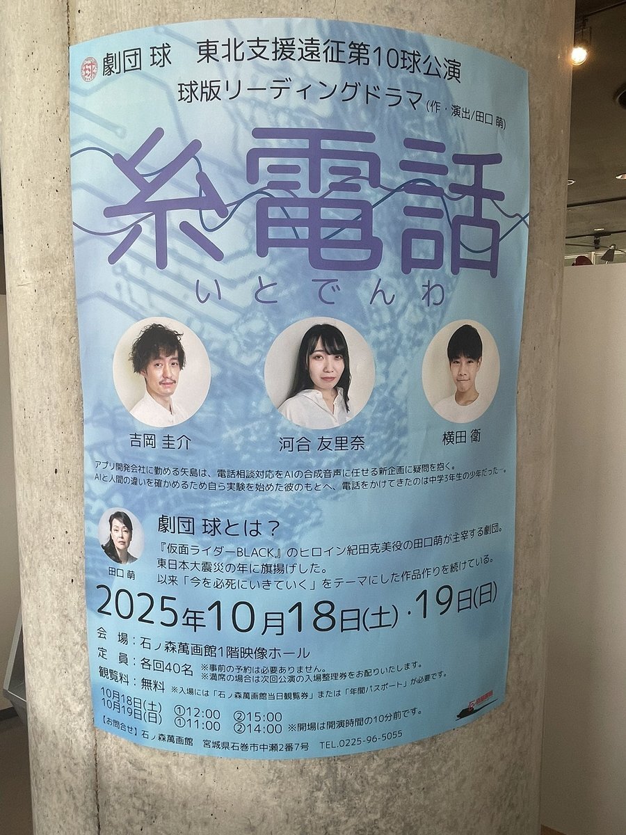 2025年 石巻遠征第10球公演❗ すべて無事に終了しました✨ ご覧いただいたお客様、 石巻の皆さま、 石ノ森萬画館のスタッフ様、 本当にありがとうございました‼️ #石ノ森萬画館 #石巻遠征公演 #球版リーディングドラマ #糸電話 pic.x.com/4mz1FeOF54