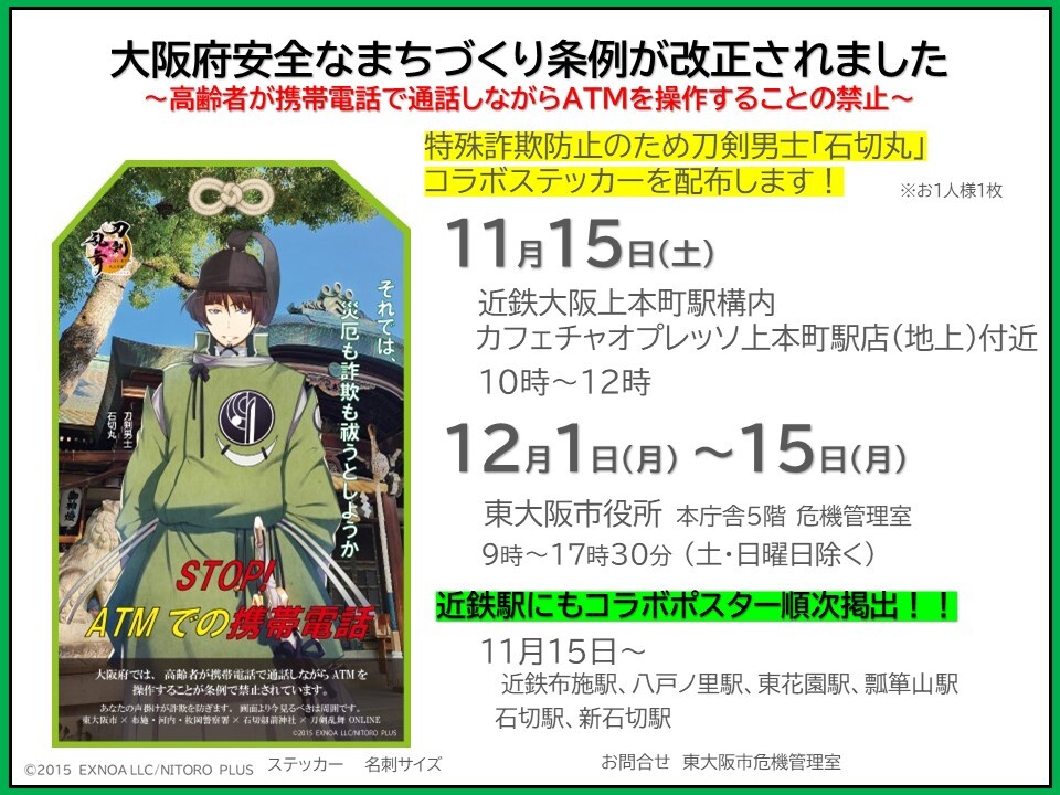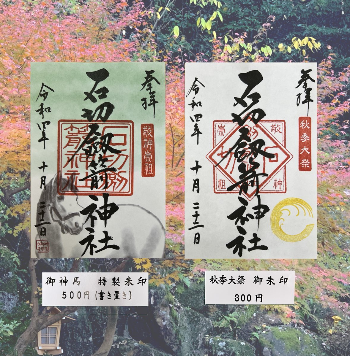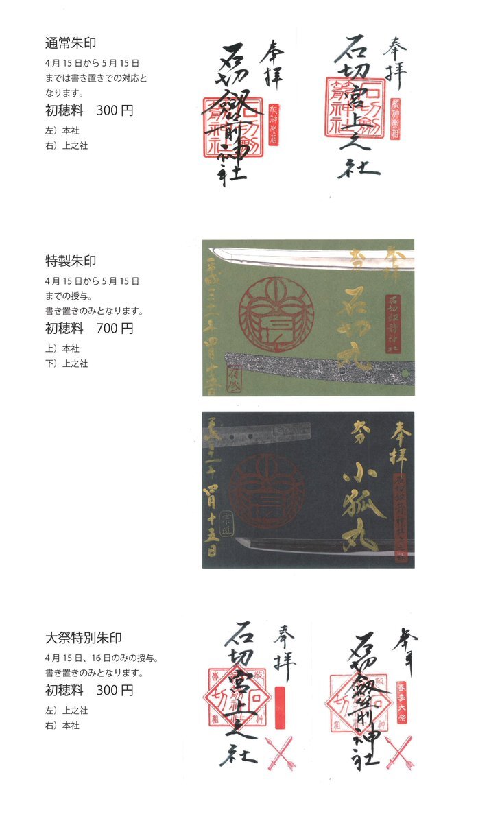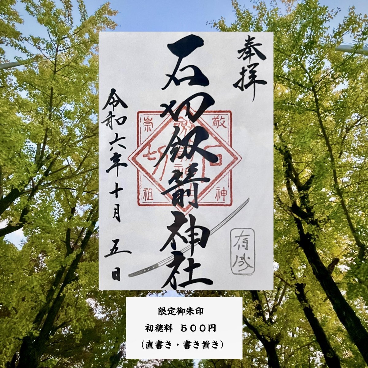 東大阪市主催の特殊詐欺防犯啓発イベント開催にあわせまして、限定御朱印を授与致します。授与日はイベント当日の10月5日(土)および、秋季大祭の10月21日(月)22日(火)です。この3日間は宝物館にて「太刀 石切丸」などの御神宝をご覧いただけます。ぜひお参りください。#石切神社 #御朱印 #石切丸 pic.x.com/J9M4rYSDbz