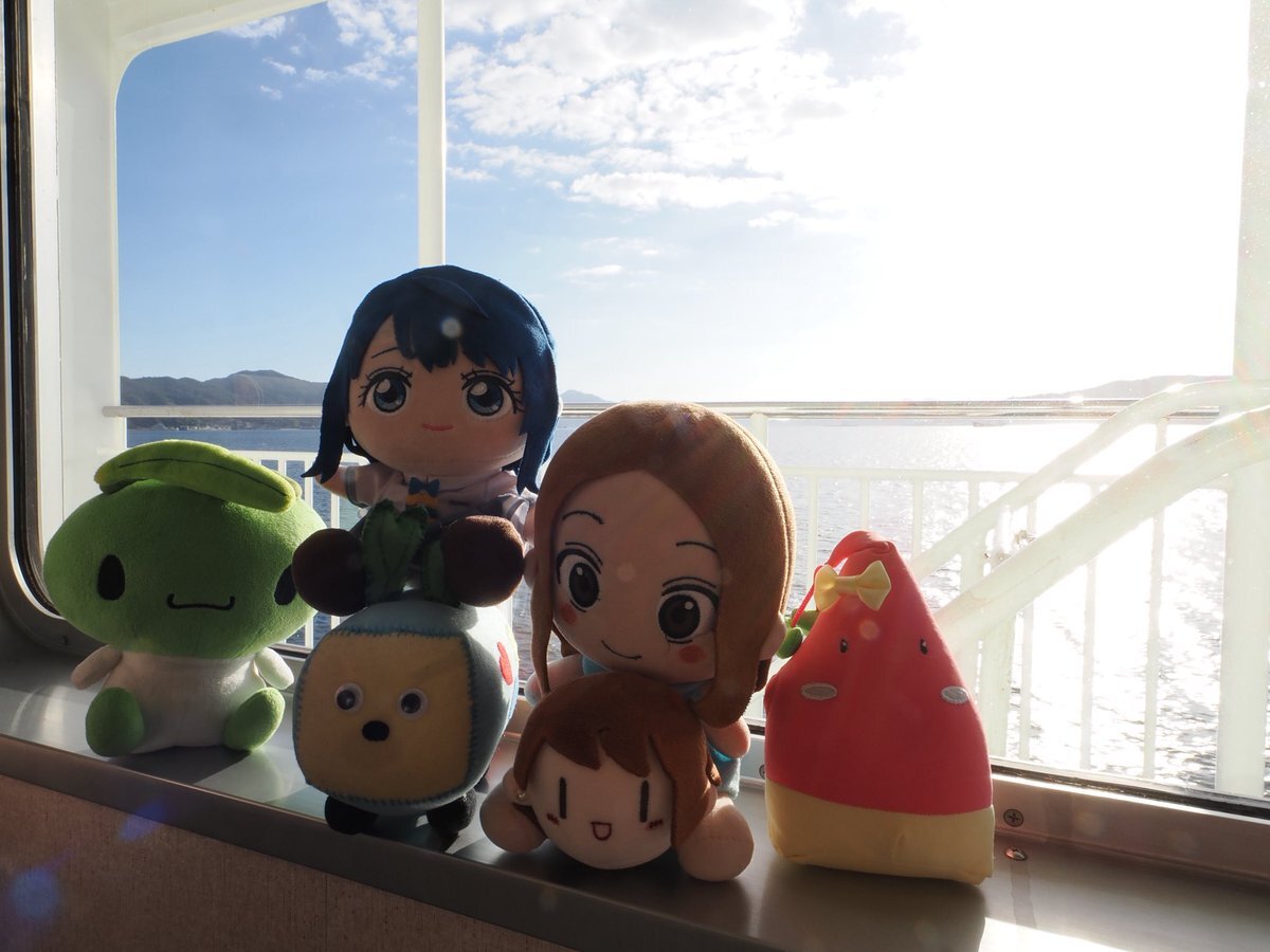 昨日は船旅皆んなで楽しみました😊 すれ違ったスーパージェット波の形が不思議だなと船尾見たら😲 途中綺麗な夕陽も(寝落ちして寝起きで甲板に出る気力が無く座席から😅) #からかい上手の高木さん #オリーブしまちゃん #ここはらちゃん #旅するぽち豆 #石崎汽船 #マケイン #べにっぽ pic.x.com/tr4Cbt7si3