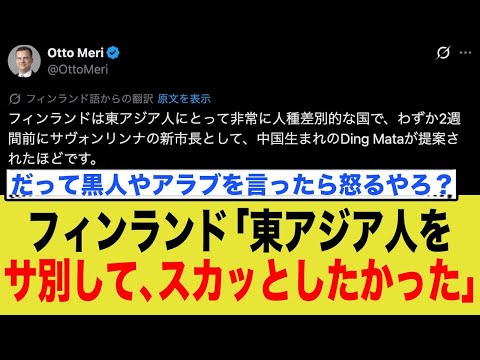 〈今ここニュース速報〉 フィンランド国会議員のアジア人サ別ジェスチャー問題。なぜか国内では「ジョーク扱い」の異常事態に世界が絶句... #社会問題 #フィンランド #国際ニュース youtu.be/8sh3_Iv3lLA?si…