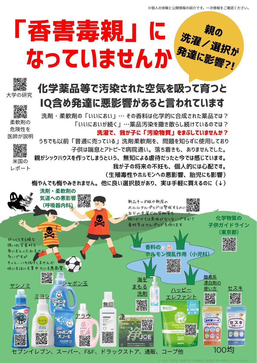 「#香害毒親 になっていませんか?」チラシ © 2025 てぱろん|商用不可|改変禁止|非営利・個人利用のみ 優しい言葉遣いではないので、使用が適しているかどうかはご自身のご判断で😊 ついでにハッシュタグ作成 ☠️電車でもXでもお見かけしますね🤰