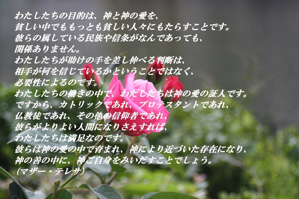 わたしたちの目的は、 神と神の愛を、 貧しい中でも もっとも貧しい人々にもたらすことです。 ・・・ わたしたちの働きの中で、 わたしたちは神の愛の証人です。 ・・・ 神の善の中に、 神ご自身をみいだすことでしょう。 (マザー・テレサ) #マザーテレサ #神の愛 #神の家族 pic.x.com/17PkEO4WxU