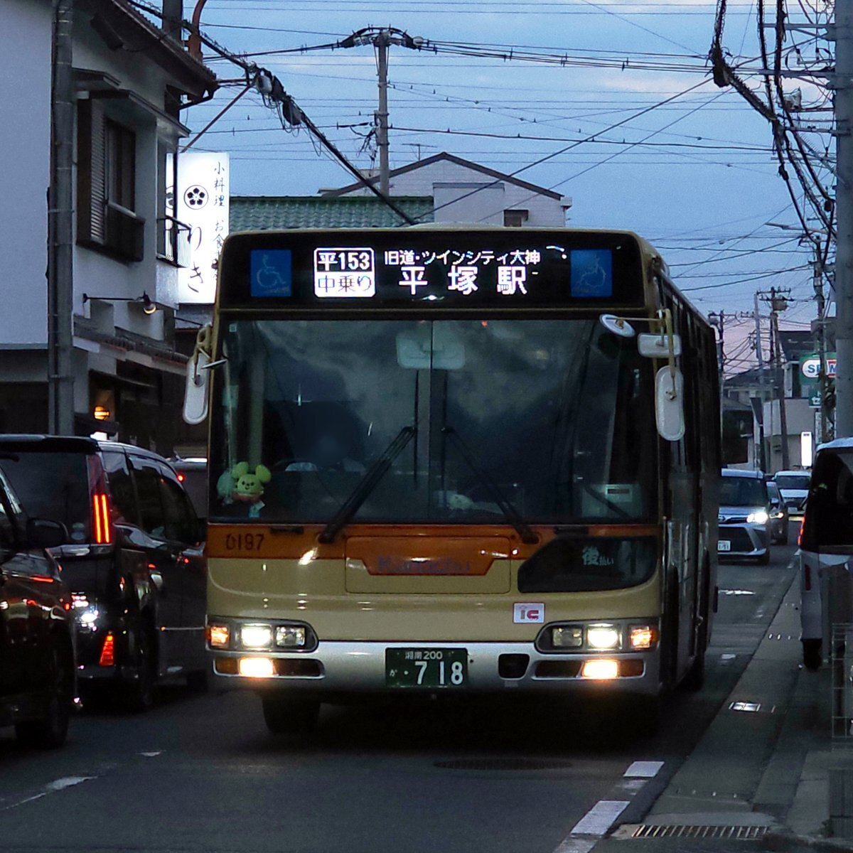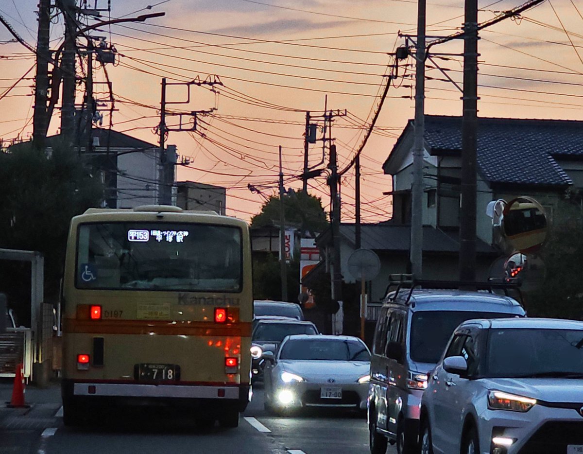 本日、対向車線の渋滞を横目に夕暮れの旧道を走るブルーリボンシティ「ひ197」を撮影しました。 土休日の夕方には、商業施設等からの帰宅中とみられる一般車が、国道129号の渋滞を回避しようとして旧道に入り込み、大念寺前を先頭に泉蔵院前までの約1㎞にわたる大渋滞が発生しています。 #神奈中 #BRC pic.x.com/sMbzqjtg9g