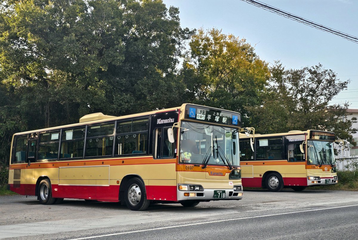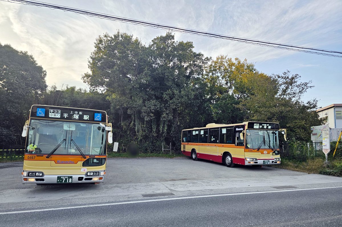本日、松岩寺の折返場にて、ブルーリボンシティの「ひ197」と「ひ199」が並んだシーンを撮影しました。 平塚駅北口から松岩寺に到着後、15:21発の平33(ひ197)と15:27発の平33(ひ199)として折り返しています。 松岩寺でのBRCの並びは初めてかもしれません。 #神奈中 #BRC pic.x.com/QgeLyFjmcy