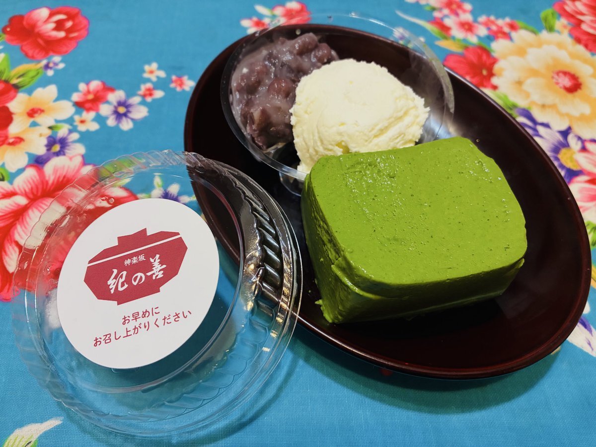 念願の「紀の善 抹茶ババロア」 (創業160年。2025年夏に復活) 以前に食べたものと変わらない味! そして、なんと株主優待が使える!嬉しい〜(買収されたのか、資本金だけが注入されたのか不明だけど、資本金注入のみで経営権&経営方針がオーナー意向のままなら最高!) #神楽坂 #紀の善 #ババロア pic.x.com/RxBpta4ym0