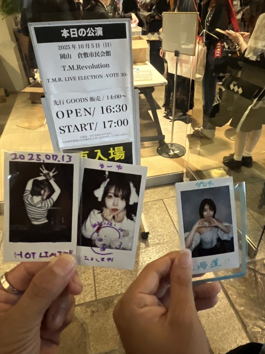 イナズマから入った3人が遂に揃った T.M.Revolution VOTE30 広島公演 エゴパラに思い入れがある ワーブレの衣装とOut Of OrbitのPV衣装を重ねる という兼ヲタだからこそのあるあるが伝わったの嬉しい (怒られそうな気がしてきたので顔隠しとく,ペンの色で察して) #神者の輪 pic.x.com/GSvSdBZBm0