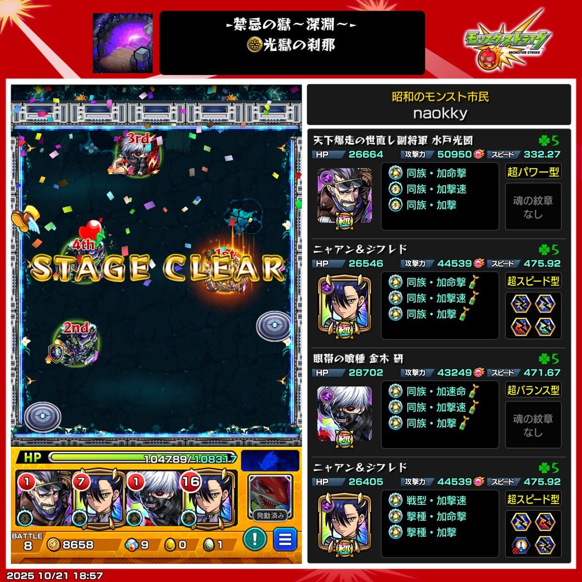 #モンスト #禁忌 #降臨 禁忌を結構プレイしていたけど初めて降臨!今回は30をクリアで出たけど何か条件あるの?期間中は何回でも出るの? 有識者の方々がいたら教えてもらえませんか?可愛いから運極にしたいっす pic.x.com/TirhmmQz1I