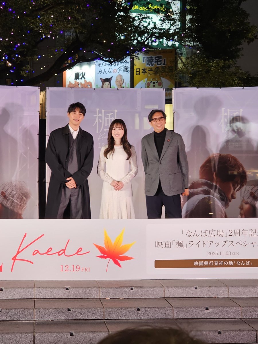 #なんば広場2周年記念ライトアップスペシャルイベント に #行定勲監督 、#福士蒼汰 くん、#福原遥 ちゃんがサプライズ登場🩷 SNSで拡散してくださいと 言ってたので 映画楓🍁は12月19日公開です どうぞよろしくお願いします🙇♀️ #映画楓 #楓泣き pic.x.com/DbJP6XBe9N