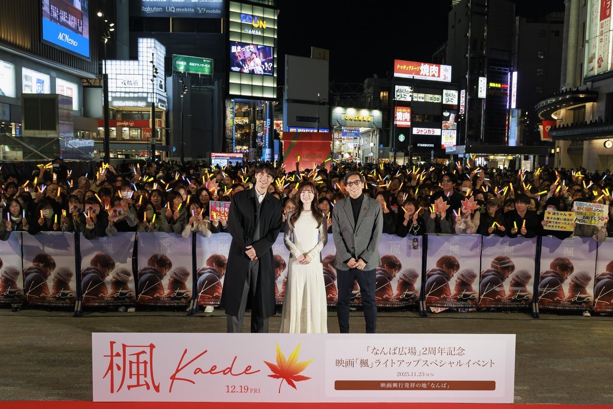 ₊˚⊹🍁#映画楓 大阪キャンペーン🍁⊹˚₊ 「#なんば広場」2周年記念 映画『#楓』ライトアップスペシャルイベント🎁 ₊‧• 会場にお集まりいただいた皆さま ありがとうございました🎄⋆꙳ 広場にサプライズで登場した #福士蒼汰 さん #福原遥 さん #行定勲 監督を📷 ✧.˚