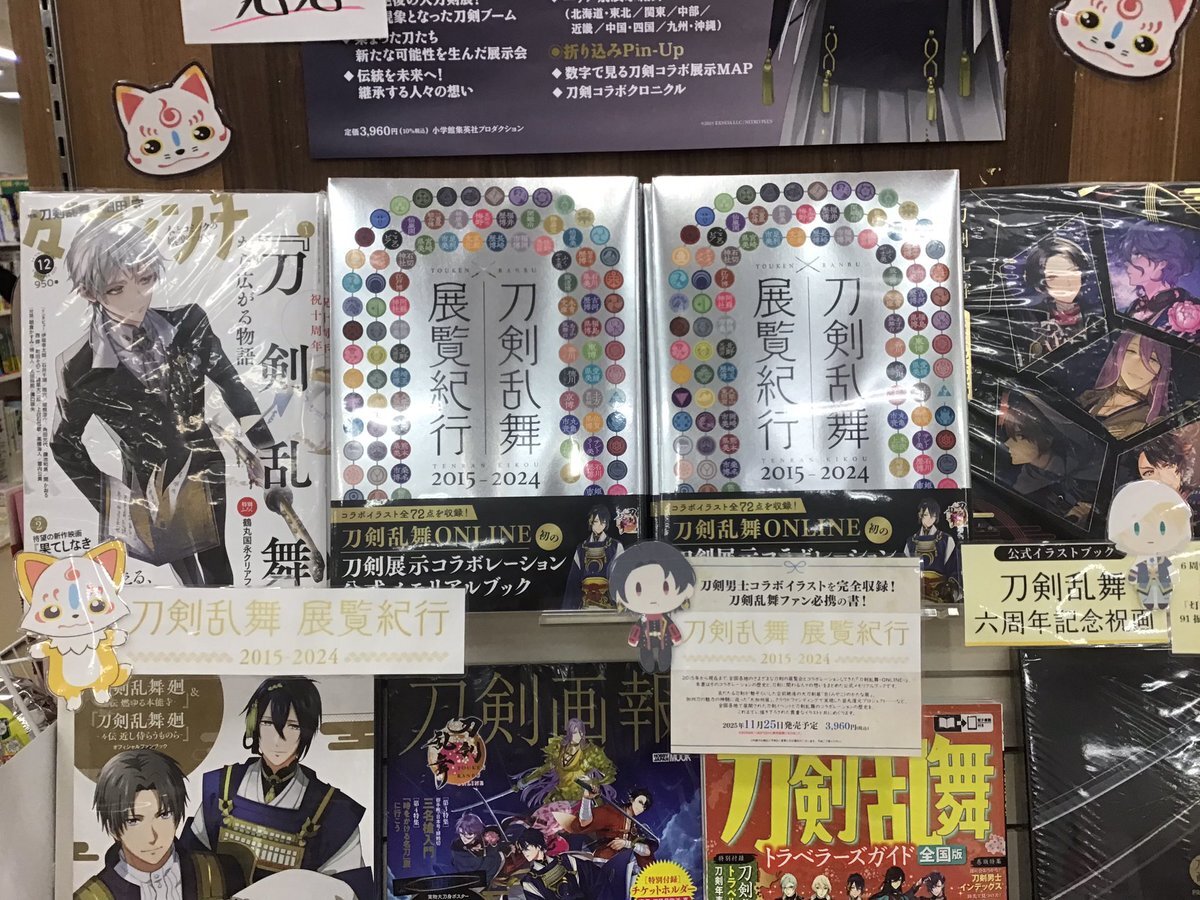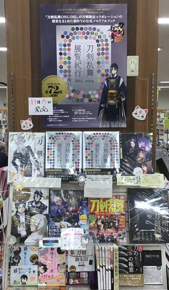 【#福家書店 #古河店】 『#刀剣乱舞 #展覧紀行 2015-2024』 『#刀剣乱舞ONLINE』の刀剣展示コラボレーションの歴史をめぐる公式メモリアルブック🎉 これまでに描き下ろされたイラストと共にめぐる一冊❣️ #こんのすけ #小学館集英社プロダクション #ShoPro #古河 #イオン古河 pic.x.com/Zcol2TYmfD