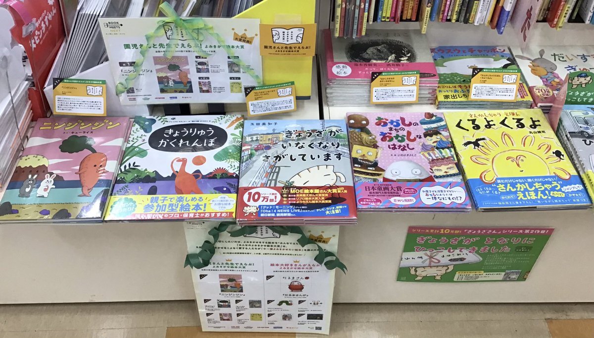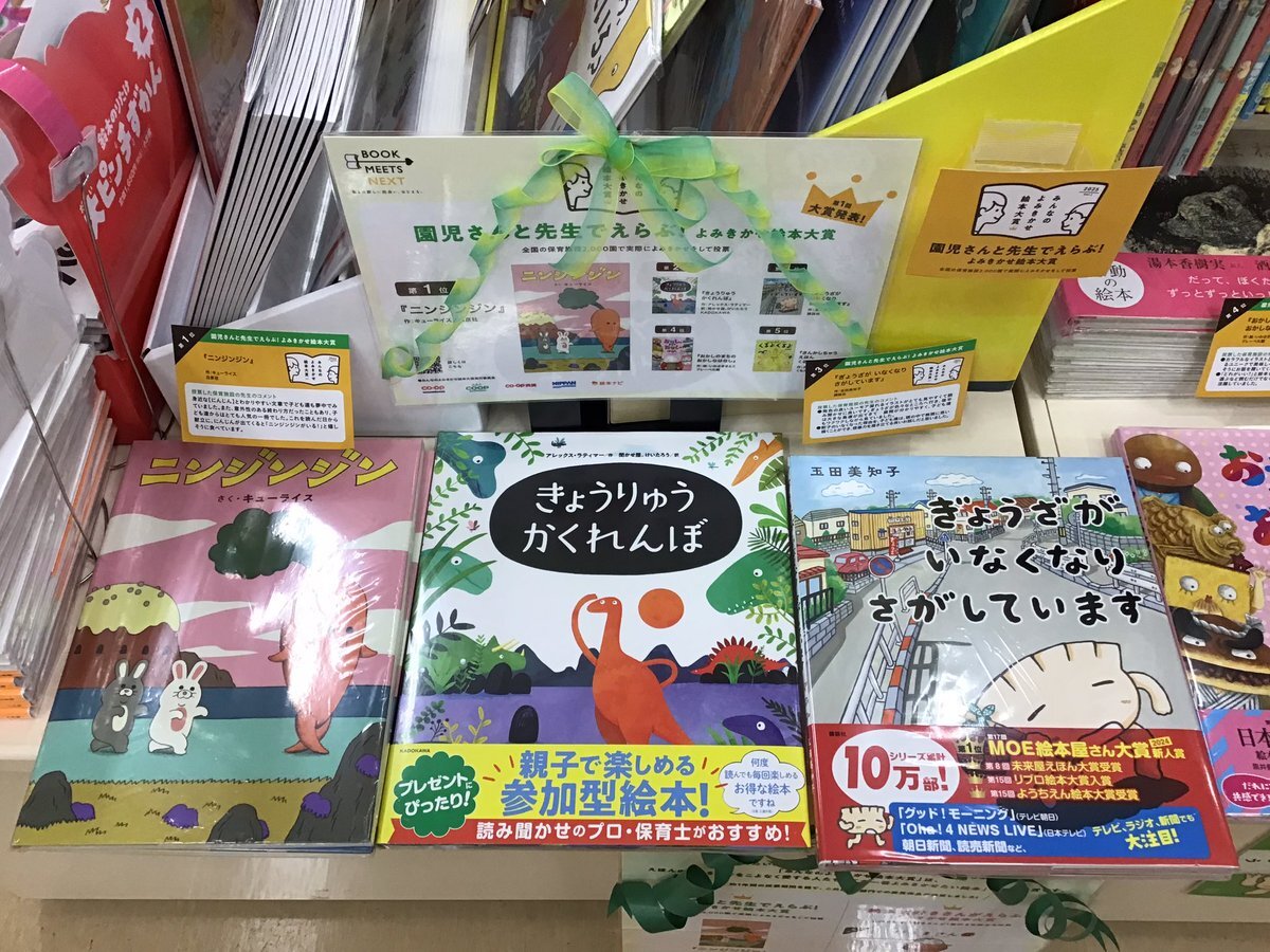 【#福家書店 #古河店】 ≪#みんなのよみきかせ絵本大賞≫ えほんのよみきかせをこよなく愛する人たちが、「今一番よみきかせたい絵本」を選ぶ大賞です❣️ 大賞の『#ニンジンジン』をはじめ、定番・新作・シュール・かわいいなど幅広い絵本達 迷ったらこの中からえらんでみては🧐 #古河 #イオン古河 pic.x.com/9pwCnZYxoM