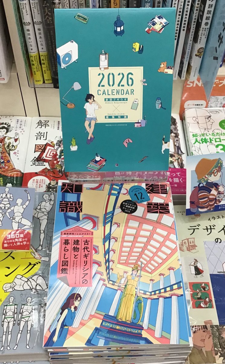 【#福家書店 #古河店】 『#建築知識 #2025年12月号』 特集「最新研究でよみがえる!#古代ギリシアの建物と暮らし図鑑」🏛️ 付録 2025年の表紙絵がまとめて手に入る、#赤羽ブギウギ さんの作品集のような 2026年カレンダー📅 #エクスナレッジ #古代ギリシア #カレンダー #古河 #イオン古河 pic.x.com/0GzYoWFwYP