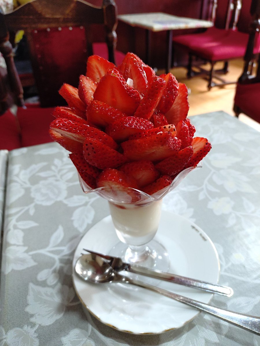 宗像市東郷駅前にある喫茶しおん。高齢女性がお二人で切り盛りされてました。 限定いちごパフェ1200円が想像以上のクオリティ。 いちごの量も多く盛り付けも完璧。 #純喫茶コレクション #純喫茶 #宗像市グルメ #福岡グルメ #いちごパフェ #喫茶しおん pic.x.com/RML5dKCJIt
