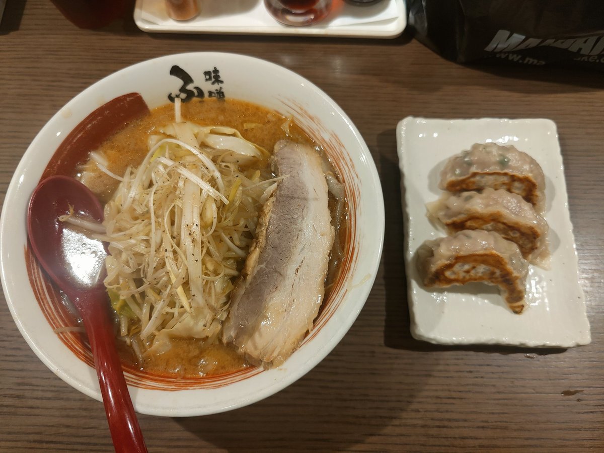 今夜は前にもポストした 味噌蔵ふくべえ🍜🥟 珠に味噌汁のようなスープがあるけど、つい飲み干してしまう←濃厚な味噌スープに北海道直送中太縮れ玉子麺にシャキシャキ国産野菜🍜🐎🐎―! オススメ!( ˘ω˘)b