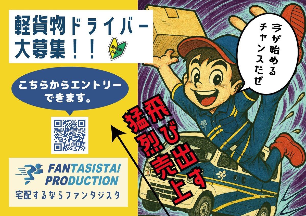 ファンタジスタプロダクションでは、新しい仲間を募集しています! ・未経験OK ・案件多数、組合せで高収入◎ ・格安車両リース制度あり ・貨物保険・業務中災害保険完備 ・車両リース制度あり 📍 勤務地 福岡市・北九州・筑後・佐賀など多数💪🚚✨ #ドライバー募集 #軽貨物 #福岡求人 #配送ドライバー pic.x.com/ULstr1kgXa