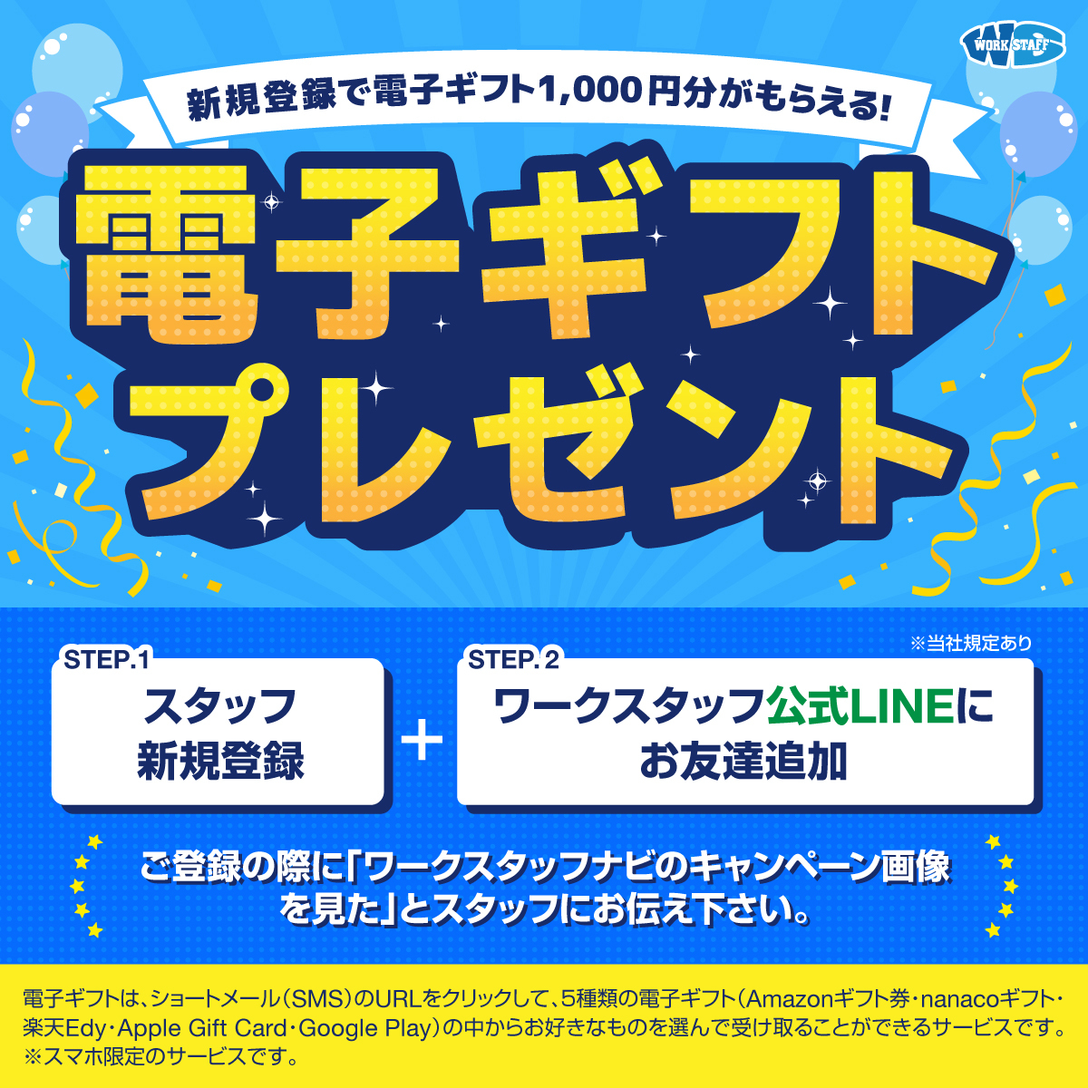 電子ギフトが貰えるキャンペーン中💓 新規登録とLINE公式をお友だち追加 & 「画像(添付)見ました」と 弊社所員へ伝えるだけ😊 まずは簡単エントリー ↓ navi.ws-gp.com/entry/ #ワークスタッフ #派遣の仕事 #福岡求人 #久留米求人 #佐賀求人 #プレゼント企画 #ワークスタッフナビ pic.x.com/SSBgyRln0t