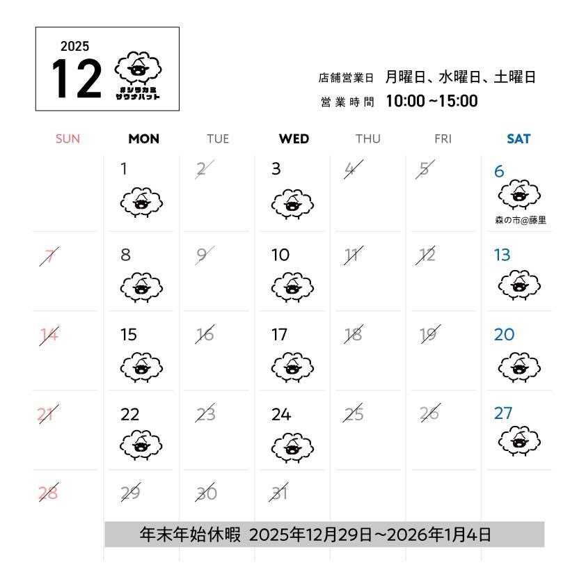 今年の営業日も 残り少なくなってきました💁‍♀️ 年末年始は 12月29日から2026年1月4日まで おやすみさせていただきます🙇‍♀️🙇‍♀️ 12月の限定商品販売中です🐏🐏 プロフィール欄にリンクがございますのでそちらからご覧いただけます💁‍♀️ #シラカミサウナハット #サウナハット #sauna #秋田 #白神山地 pic.x.com/C6uJ23LF9i