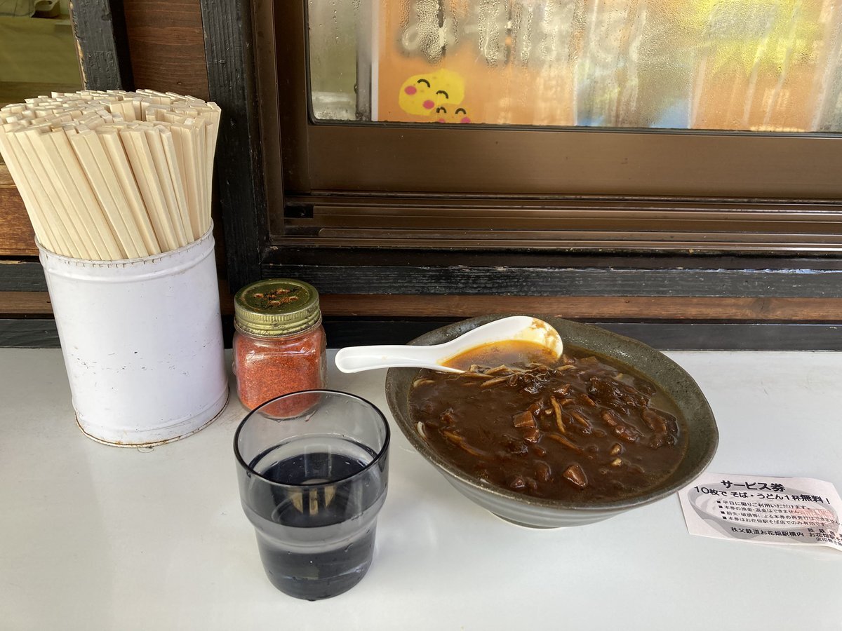撮り鉄時代は白久カーブ一択からの、秩鉄そばを食べてたんだけど、久しぶりに食べた蕎麦美味しかった。しかも!新メニューのカレー蕎麦よ!さてと秩父と言えば矢尾百貨店だから向かいます!#秩父 pic.x.com/EujCSFY7jk