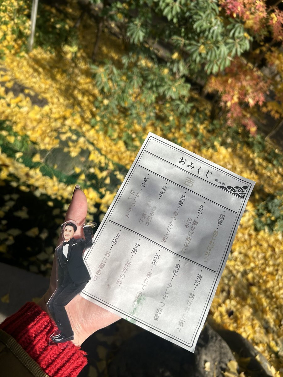 ステップ③ 秩父神社にお参り⛩️🙏 大吉とかあんま引かないタイプ(普段はだいたい大吉だがな) イチョウで神社が黄色に染まる素敵な季節にこれて最高でした素敵なご縁をありがとう☺️🍂 (3.4枚目はひーを探せ) #じぶんを主語に_秩父 #特急ラビュー #西武鉄道 #秩父 #岩本照 pic.x.com/7ms7LfHzfv