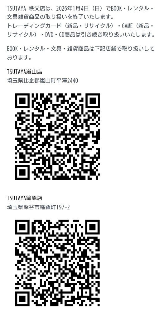 【新店舗】 2026年2月20日(金) 「駿河屋 秩父店」が 「TSUTAYA秩父店」の2階に オープン‼️ #秩父 #TSUTAYA #グリーンブック #駿河屋 pic.x.com/xkDqVABwqI x.com/iGJEXldkmV3bps…