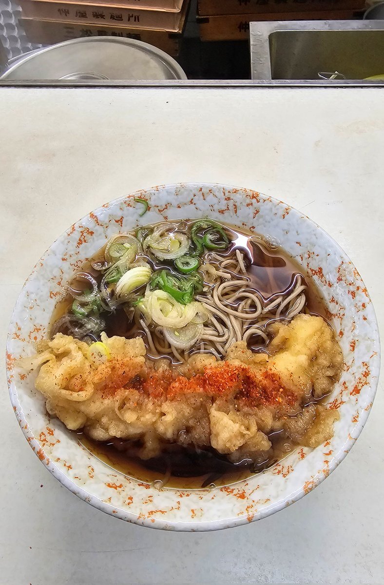 🌥️朝ごはんは西日暮里あやめ通り『仲屋製麺所』さん 細・ひもかわ無しでイカ天そば🦑 今週も美味しく頂きました~😋👌 #立ち食いそば放浪記 #立ち食いそば #仲屋製麺所 #西日暮里あやめ通り pic.x.com/uy9LaLbNCW