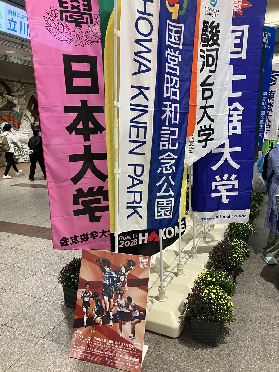 こんどの土曜日10/18に #立川#箱根駅伝予選会 が開催されるらしい。 #立川駅 には出場大学ののぼりが立てられてた😃 #筑波大学 のも✨私立大勢におされてなかなか本選出場できてないけどぜひ頑張ってほしい✊8:30に #陸上自衛隊 立川駐屯地でスタートし、 #昭和記念公園 がゴールなんだとか🏁 pic.x.com/9z8TuK3ypp