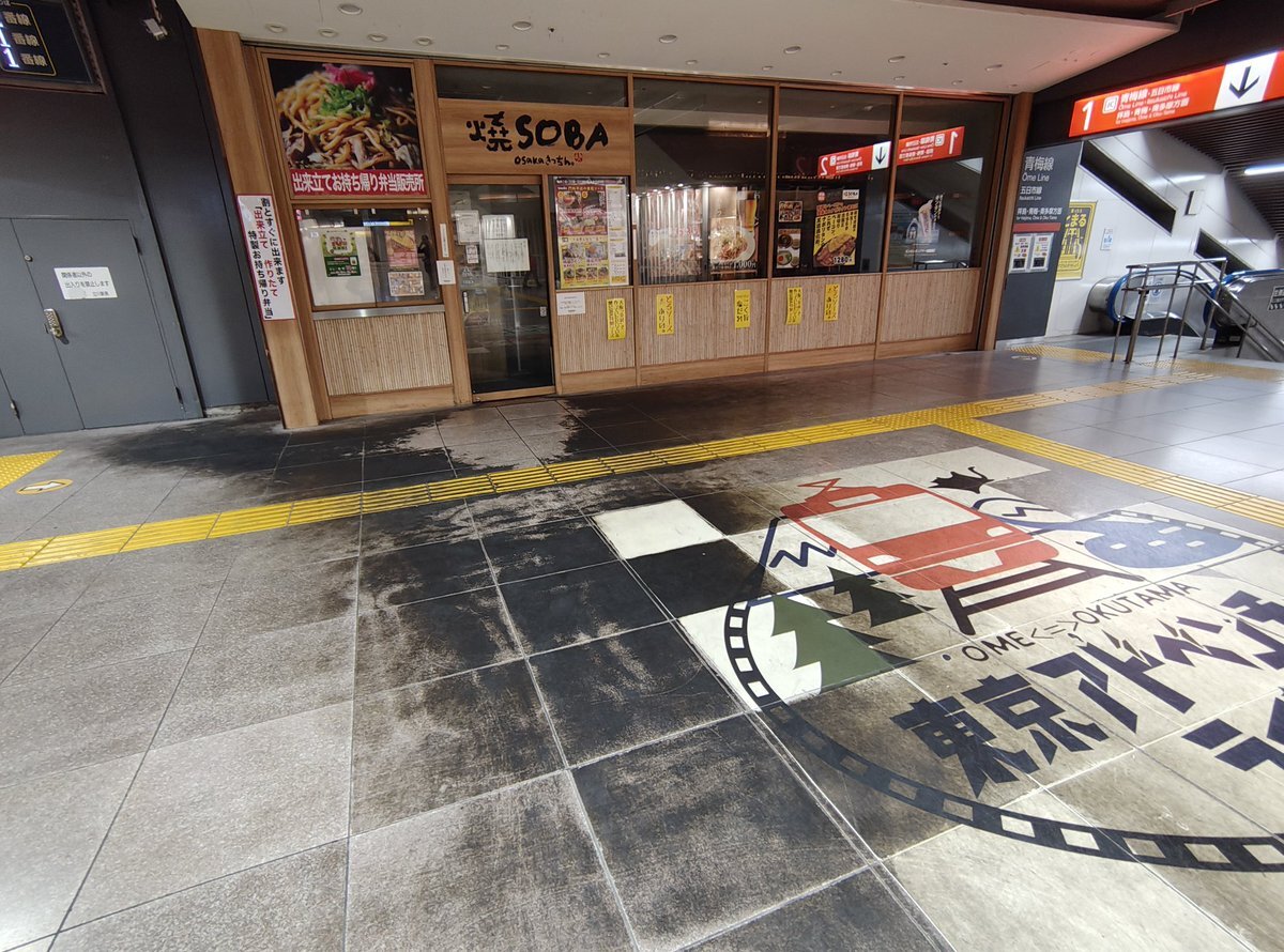 焼きそばの脂の床 出入り口のトコだけ、逆に綺麗になってるのは微笑ましい。 コレ、床の清掃代と歩いた人の靴の裏凄そう #立川駅 pic.x.com/XZuG1uEXUp