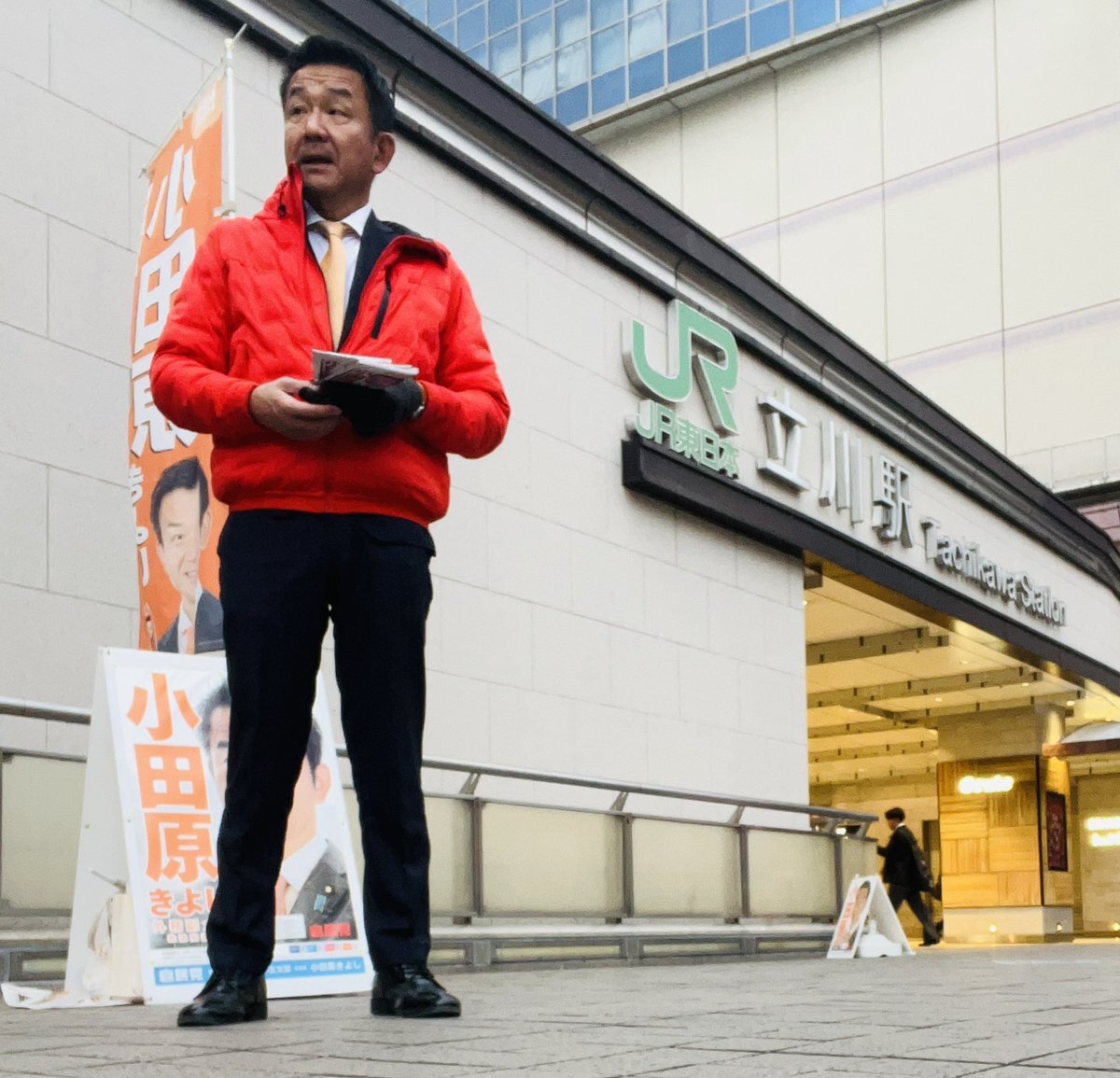 11月25日、おはようございます。今朝は #立川駅 北口から始動。 暖かく感じる朝ですがこれから雨が降る予報です。傘のお忘れ物にご注意ください。 #小田原きよし #東京21区 pic.x.com/p8oTYFJilE