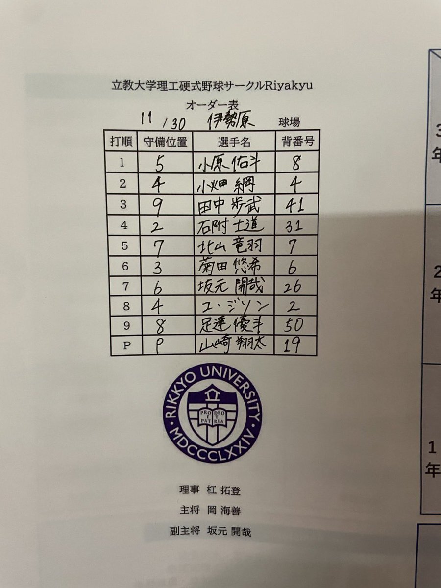 本日のスターティングメンバーです! 一球速報.comから試合をチェック! リンクはこちらです↓ baseball.omyutech.com/CupHomePageHis… #リコタイ #六大学野球 #硬式野球 #立教 #法政 pic.x.com/g46SDdx7Bn