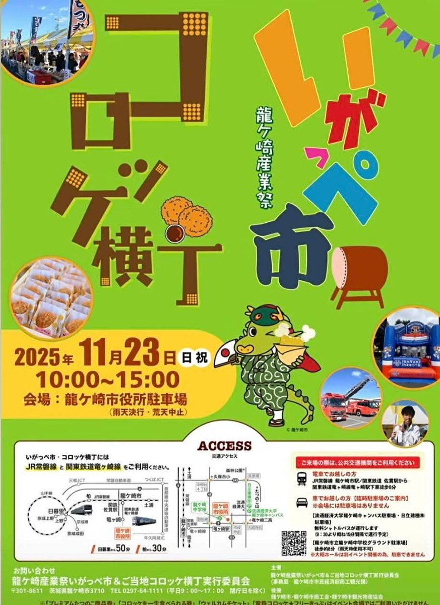 11/23(日)は 龍ケ崎市役所にて コロッケ横丁・いがっぺ市😉 お出かけは竜鉄(竜ヶ崎線)が便利です! メリット☝ ・駐車場に困らない🤣 ・渋滞知らず🤣 ・会場でお酒飲める🍺🤣 ぜひ竜鉄にご乗車下さい! #竜鉄 #竜ヶ崎駅 #関東鉄道 #竜ヶ崎線 #龍ケ崎市
