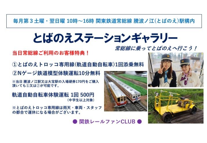 #とばのえステーションギャラリー 11/15(土)16(日) 10~16時 ぜひお越し下さい😉 11月度は… ・第11期レールメイト ラストラン ・とばのえ駅の柿プレゼント ※柿は常総線でご来駅の方に進呈します(数に限りあり) #関鉄レールメイト #騰波ノ江駅 #関東鉄道 #常総線 #竜ヶ崎線 #関鉄レールファンCLUB pic.x.com/HTFa2lfipo